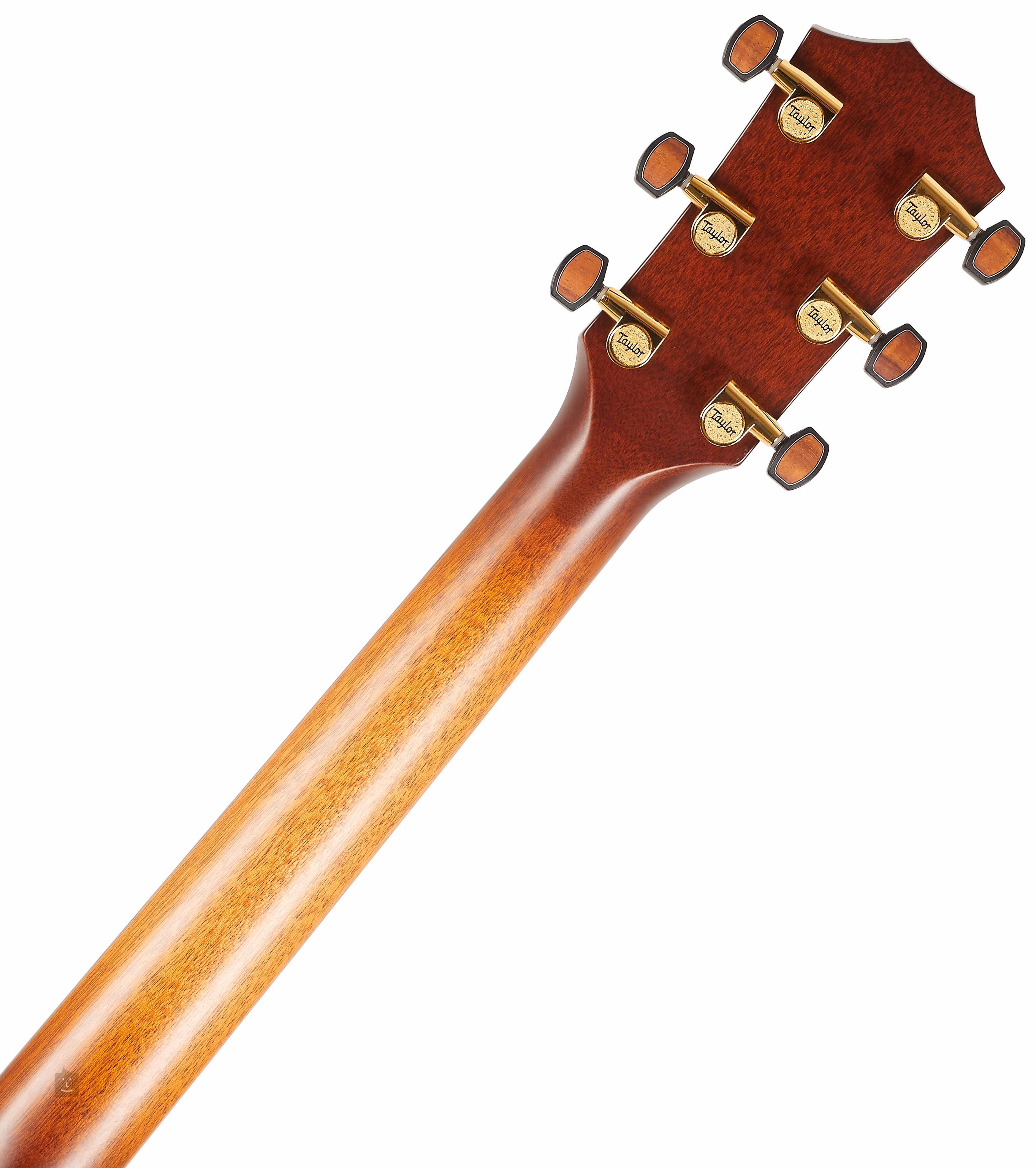 K mahagonovému krku je přilepen ebenový hmatník. Stabilní ladění zaručuje uchycení strun přes nultý pražec v zlatých mechanikách Taylor s ebenovými kolíčky vykládanými koa a ebenové kobylce. Luxusní zpracování kytary podtrhuje opěrka ramene a obvodová lemovka těla z exotického cocobolo, dekorativní rozeta a polohové značky z cocobolo a javoru ve stylu Art Deco, kolíčky do kobylky s červenými tečkami z australských opálů a perleťové logo na hlavici (Mother-of-Pearl).