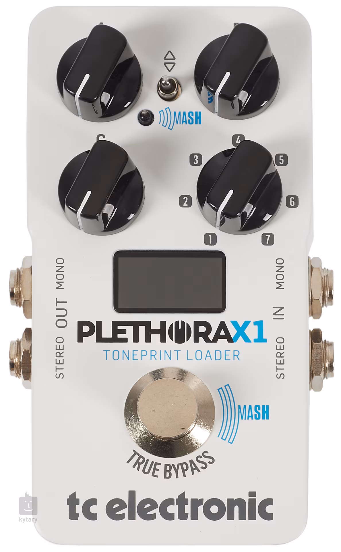 PLETHORA X1 je nejmladším a nejkompaktnějším bratrem dvou předešlých multiefektů z řady PLETHORA – X5 a X3. Narozdíl od předešlých verzí nabízí jen jeden footswitch, takže se velmi snadno integruje do vašeho pedalboardu. Díky inovativní funkci MASH lze footswitch použít podobně jako expression pedál a ovládat jím dynamické parametry jednotlivých efektů. Krabička nabízí 7 presetů, z nichž každý pojme dva různé TonePrint efekty. Celkem tedy můžete přepínat mezi 14 různými zvuky. Tři univerzální potenciometry vám umožní rychle nastavit parametry efektů – informace o ovládaném efektu a jeho parametrech se zobrazí na přehledném LCD displeji.
