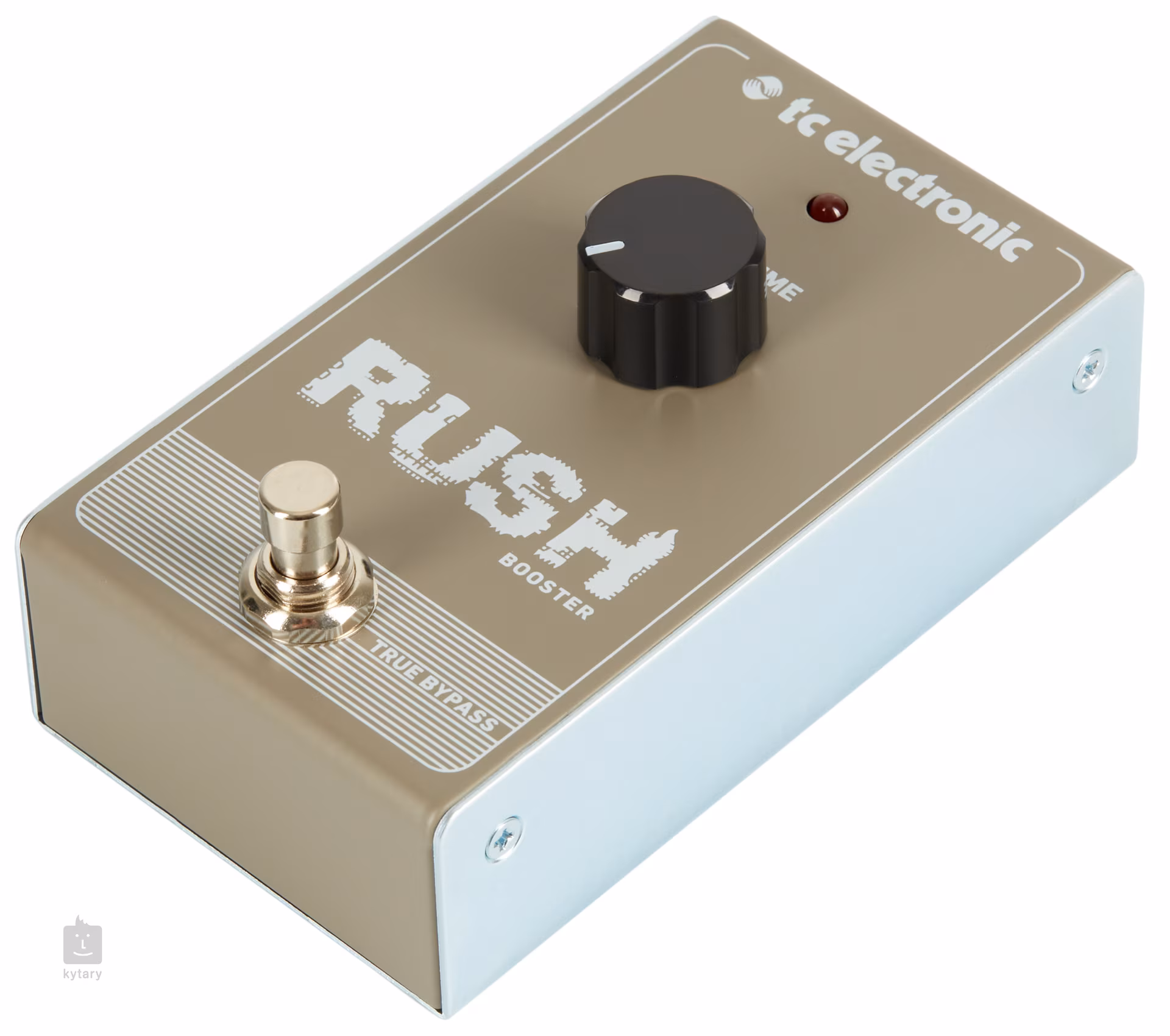 Rush Booster je poctivý, plně analogový pedál, který zesiluje signál až o 20 dB. Zvýrazní sóla, případně jej lze zařadit před distortion a přidat tak ještě více gainu. K ovládání slouží pouze jediný knob, a to Volume. Po zesílení zůstane originální tón beze změn či jakýchkoliv frekvenčních ořezů a pedál tak nechá vyniknout váš charakteristický zvuku i feeling. Když není Rush Booster zrovna aktivní, zapojení True Bypass zajišťuje naprosto čistý průchod signálu. Pedál napájí 9V baterie nebo volitelný adaptér.