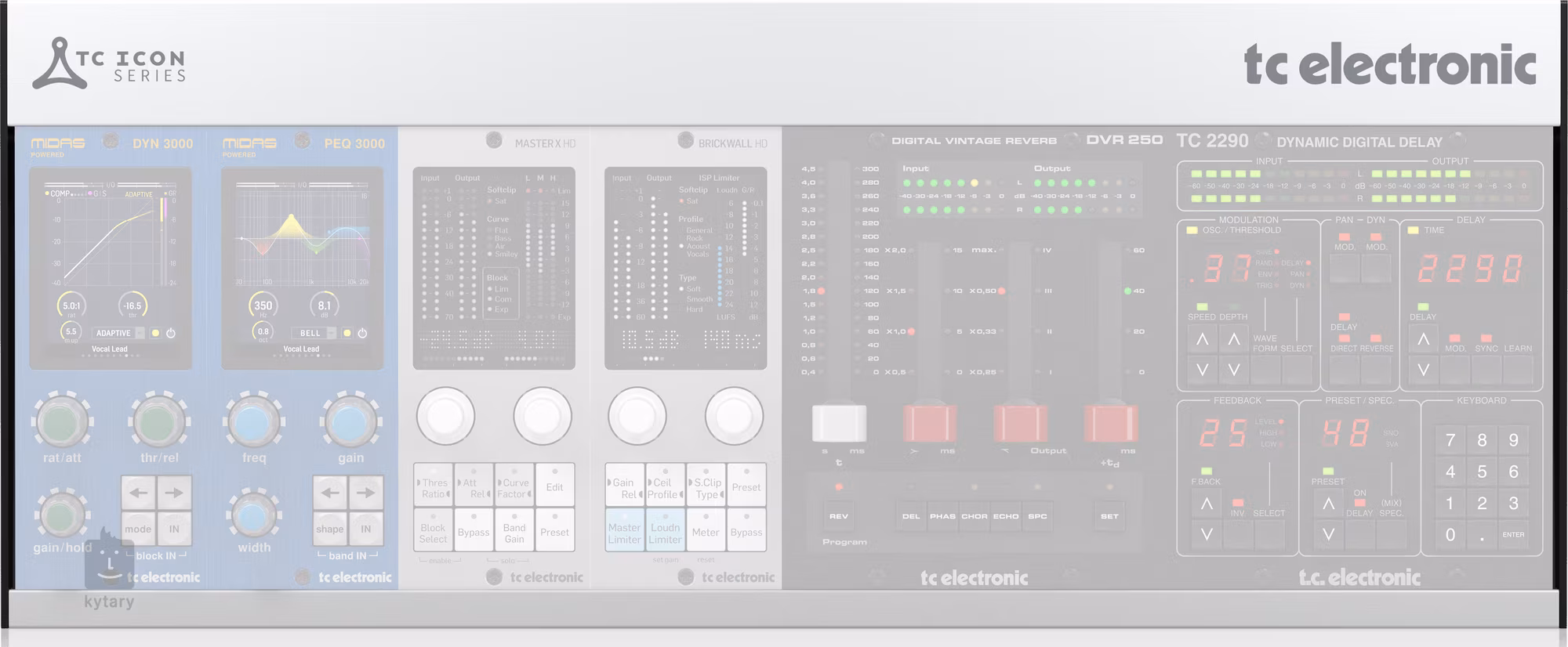 TC Electronic Icon Series (TC2290-DT, DVR250-DT, TC8210-DT, TC1210-DT, Maste X HD-DT, Brickwall HD-DT, PEQ 3000-DT, DYN 3000-DT
