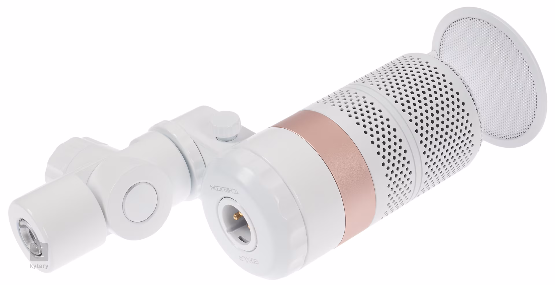 Příjemným bonusem je také možnost uzpůsobení designu mikrofonu díky vyměnitelného barevného prstence – v balení je celkem 10 barevných prstenců, které zajistí, že svůj mikrofon snadno sladíte se zbytkem vaší výbavy. Mikrofon je vybaven standardním XLR konektorem pro jednoduché propojení se zvukovou kartou nebo mixem.