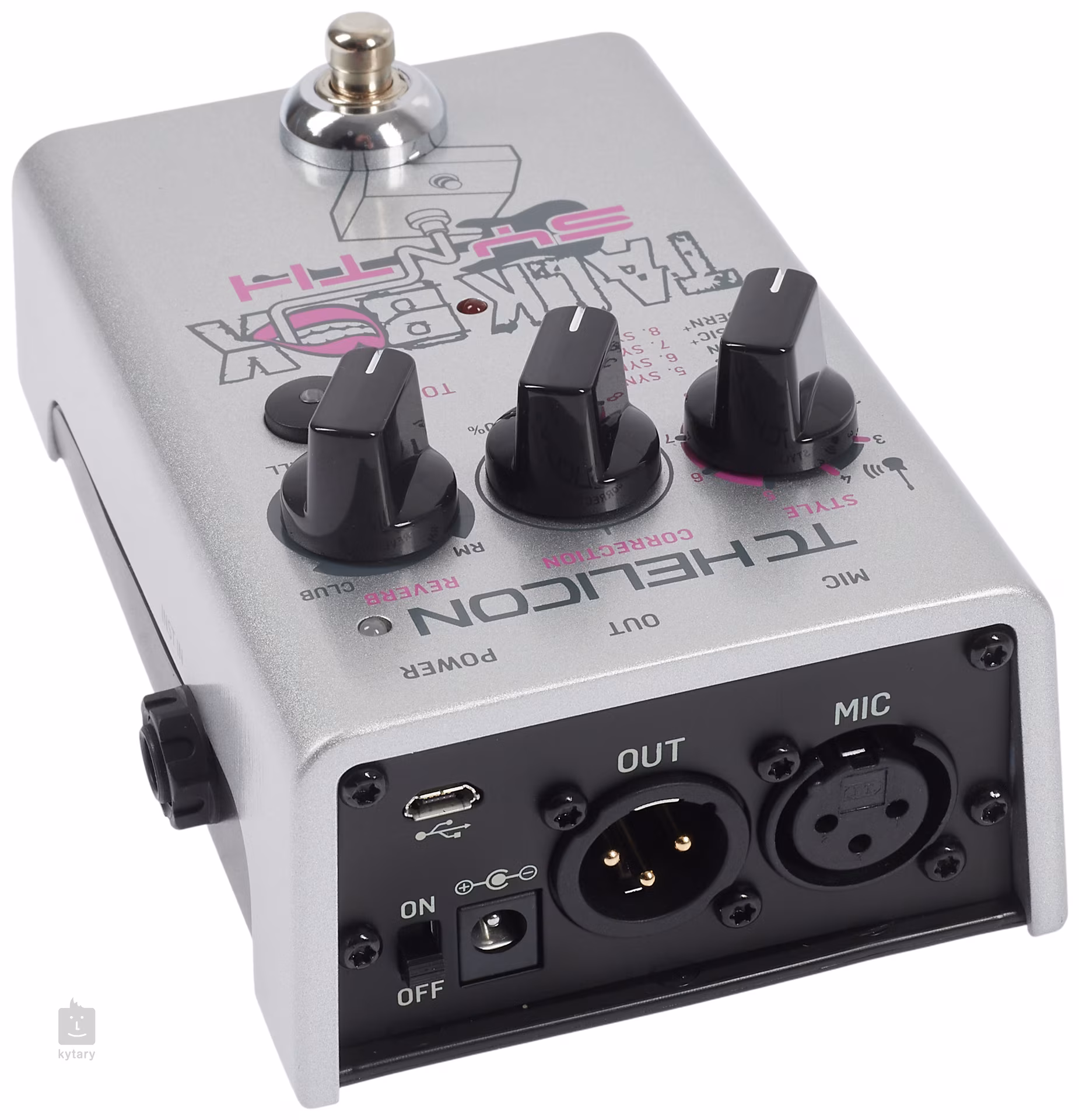 Talkbox Synth kombinuje kytarové a vokální efekty, které pomohou dále rozvíjet váš hudební výraz. K dispozici jsou dvě verze Talkboxu (Classic, Modern), které lze dále kombinovat s kytarou a regulovat tak výšku tónu. Krabička nabízí čtyři druhy syntetizérů, tři reverby, adaptivní ekvalizér, kompresor, de-esser a gate. Nikdo není dokonalý, a tak součástí výbavy je i automatická korekce zpěvu, která lehce poupraví intonaci k nejbližšímu tónu. Talkbox Synth funguje také jako nízkošumový mikrofonní předzesilovač s fantomovým napájením, který si sílu výstupu reguluje automaticky. USB výstup slouží k propojení s aplikací VoiceSupport, která nabízí aktualizace, novinky a FX presety další.