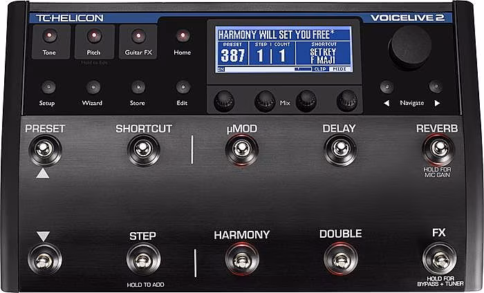 VoiceLive 2 with VLOOP je nejnovější generací jednoho z nejoblíbenějších podlahových vokálních procesorů v nabídce TC Helicon. Naleznete v něm všechny potřebné nástroje, které zpěvák může potřebovat jak naživo, tak ve studiu – od kvalitního mikrofonního předzesilovače s phantomovým napájením a limiterem, přes efekty pro úpravu a obohacení vokálu až po technické záležitosti typu MIDI ovládání, USB rozhraní nebo S/PDIF vstupu a výstupu.