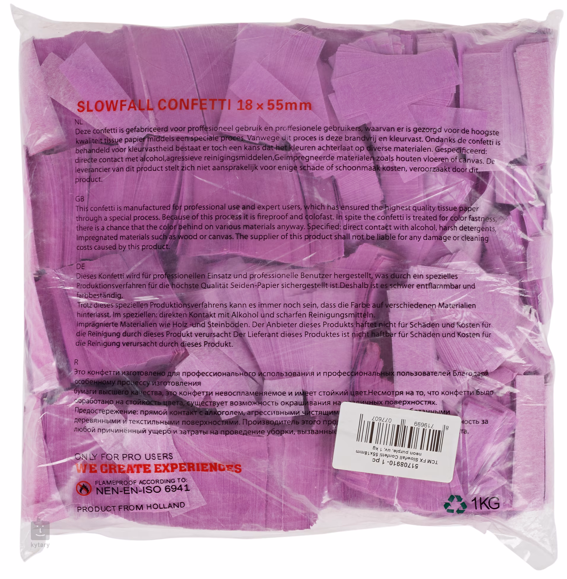 Konfety se staly nedílnou součástí každé live performance, diskotéky, nebo dětské narozeninové oslavy. Tyto pomalu padající konfety disponují neonovými fialovými proužky o rozměrech 18 x 55 mm, vystřelovací trubice není součástí balení.