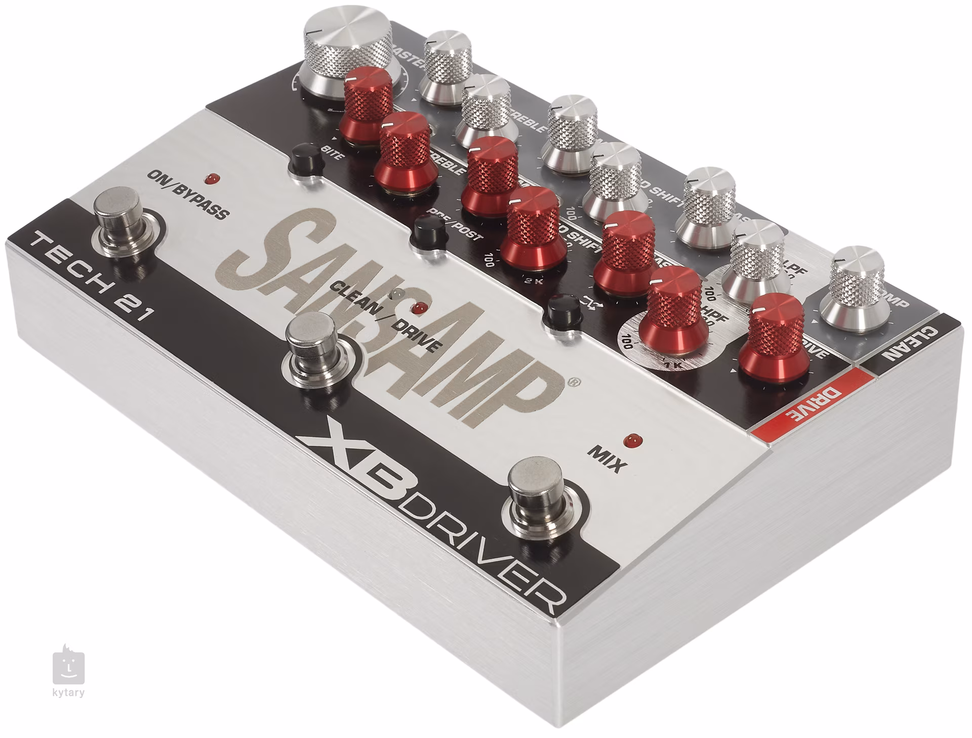 SansAmp XB Driver je 100% analogový, dvoukanálový pedál, který představuje skutečnou pokladnici ceněných basových tónů. Jde o sofistikovaný nástroj s možnostmi dvou zesilovačů, bi-amp a DI, který nabízí patnáct knobů a tři přepínače uspořádané intuitivně podobně jako ovládací prvky známých zesilovačů. Umožňuje tak snadno vytvářet široké spektrum basových tónů bez nutnosti dlouholetého studia. Čistý (Clean) a zkreslený (Drive) kanál jsou plně frekvenčně nezávislé kanály, které lze používat samostatně nebo smíchat pomocí footswitche Mix. V režimu Mix lze pomocí přepínače crossover aktivovat proměnlivé filtry LPF a HPF, což umožňuje ještě detailnější úpravy vašeho zvukového profilu.
