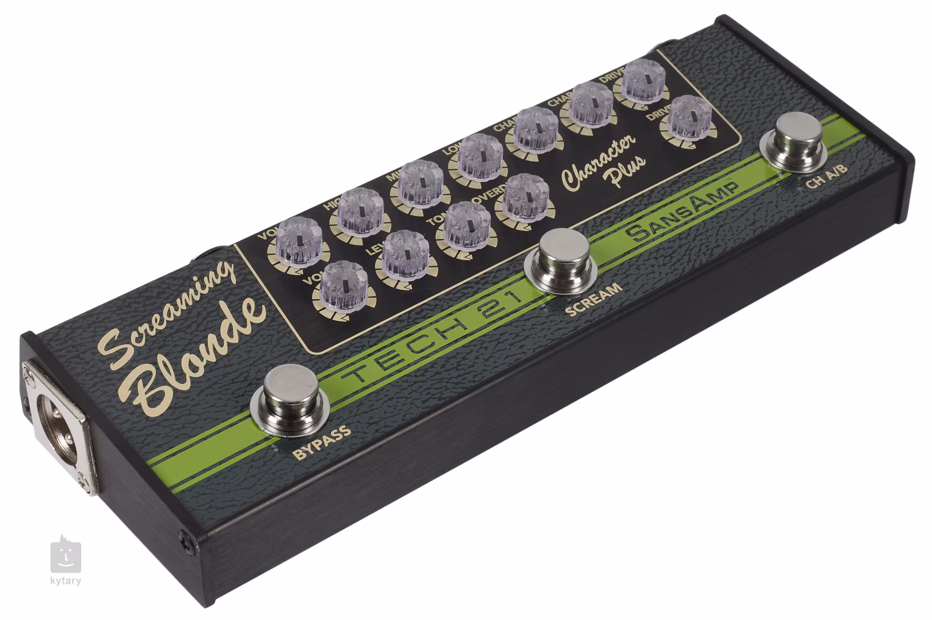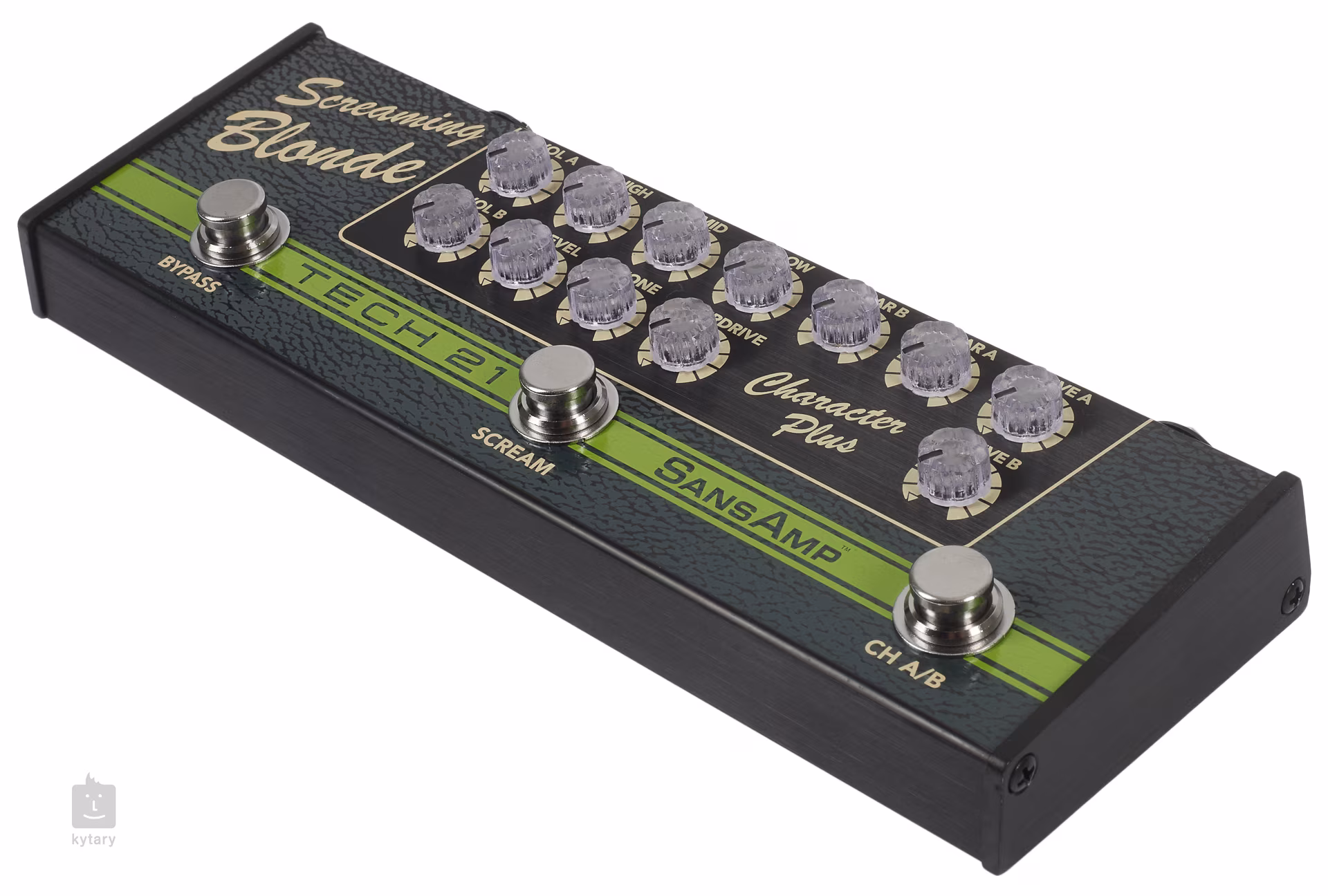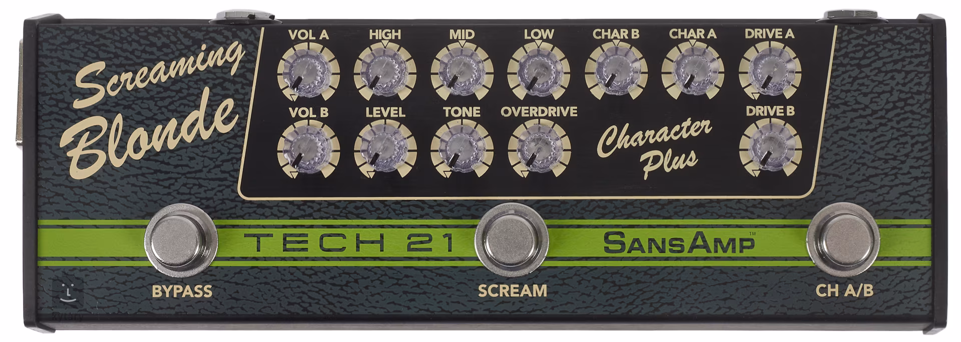 Screaming Blonde spojuje dvoukanálový preamp ve stylu kytarových aparátů Fender s efektem typu Tube Screamer.