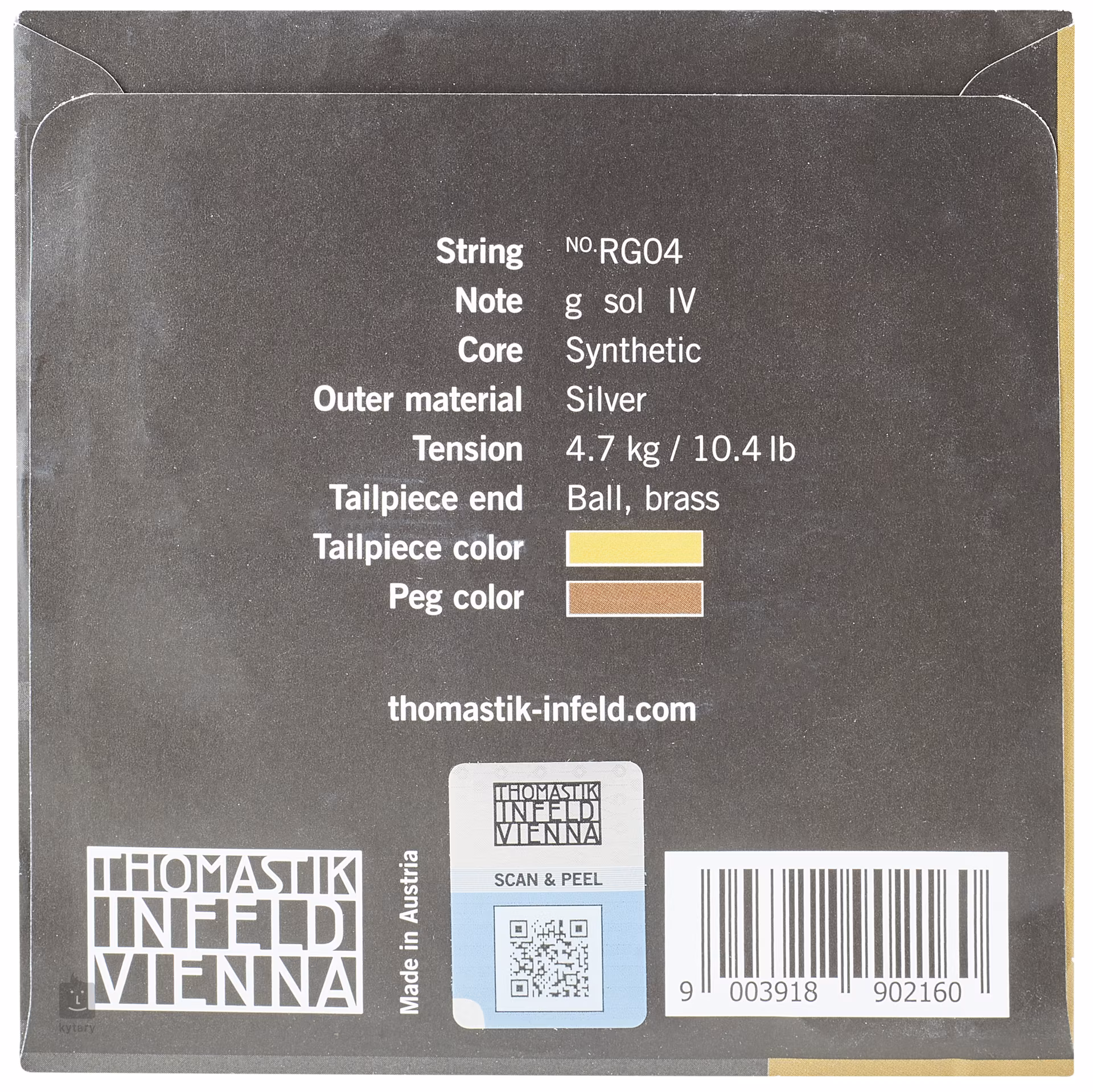 Kusová struna A ze série Rondo Gold od společnosti Thomastik, která vyniká stabilním laděním a jasným teplým tónem. Vinutí je ze stříbra.