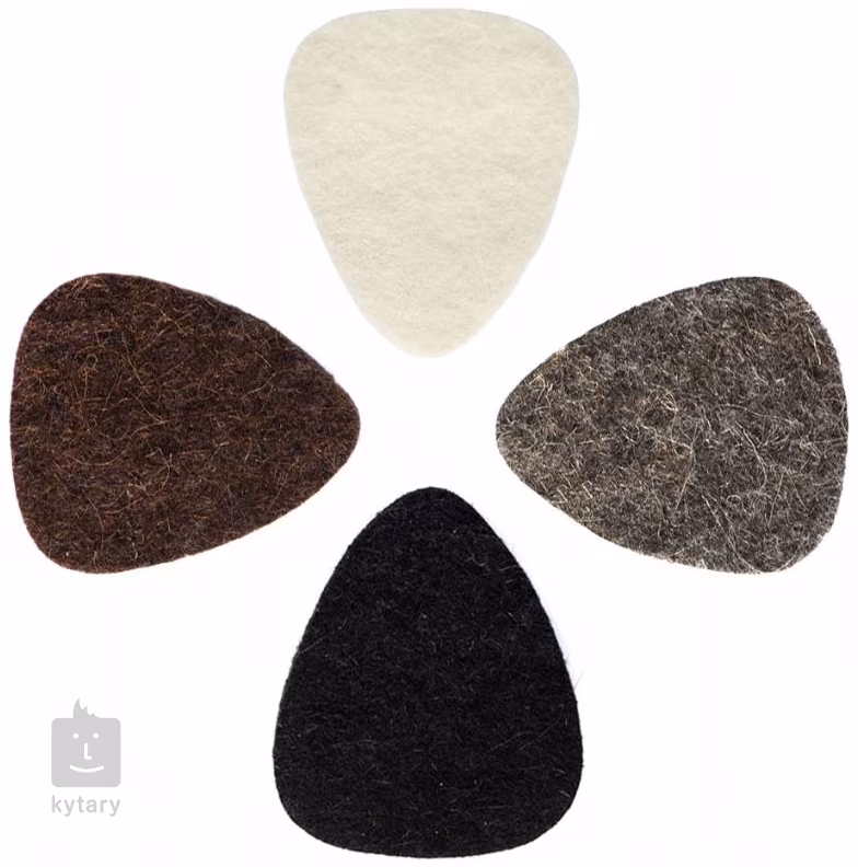 Sada čtyř trsátek z vlněné plsti, která jsou ideální pro hru na ukulele. Přírodní vlna je měkká a poddajná, takže je šetrná k nylonovým strunám a dodává zvuku kulatý a vřelý tón. V balení najdete trsátka o různých tvrdostech – bílé je tlusté 4 mm, šedé 5 mm, hnědé a černé mají tloušťku 5 mm a jsou navíc vyztužená, což zvyšuje jejich tvrdost a dodává jim jasnější zvuk. Součástí balení je praktická plechová krabička.