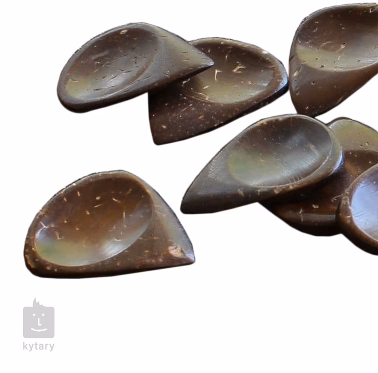 Ať už hledáte dárek pro nadšeného kytaristu nebo se jen pídíte po dokonalém zvuku a toužíte vyzkoušet trsátka z netradičních materiálů, u Timber Tones zajisté najdete, co potřebujete. Toto trsátko z řady Funk Tones je vyrobeno ze slupky kokosového ořechu. Je středně tvrdé a produkuje vřelý, kulatý tón. Potěší zejména ty, kterým vyhovuje rychlá a ostrá špička trsátek Jazz III, ale zároveň požadují pevný a pohodlný úchop. Je vytvarované tak, aby přesně padlo do ruky, s důlkem pro palec na jedné straně a jamkou pro ukazováček na druhé. Díky tomu poskytuje naprosto spolehlivý grip, který udrží trsátko v ideální poloze po celou dobu hry.
