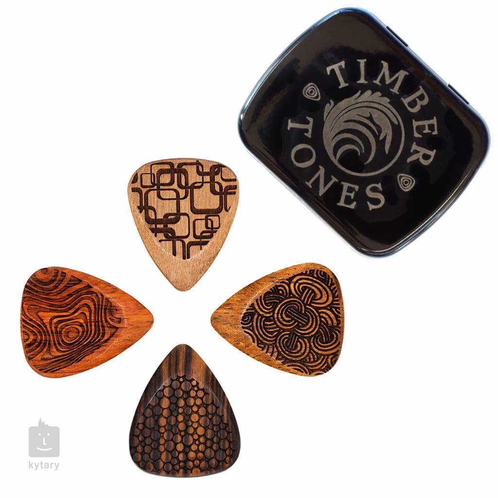 Ať už hledáte dárek pro hudebního nadšence nebo se jen pídíte po dokonalém zvuku a toužíte vyzkoušet trsátka z netradičních materiálů, u Timber Tones zajisté najdete, co potřebujete. Tato sada obsahuje mix čtyř trsátek z exotických dřevin, které produkují různě barevné tóny, jež potěší hráče na akustické i elektrické kytary. Trsátka jsou dodávána v praktické plechové krabičce.