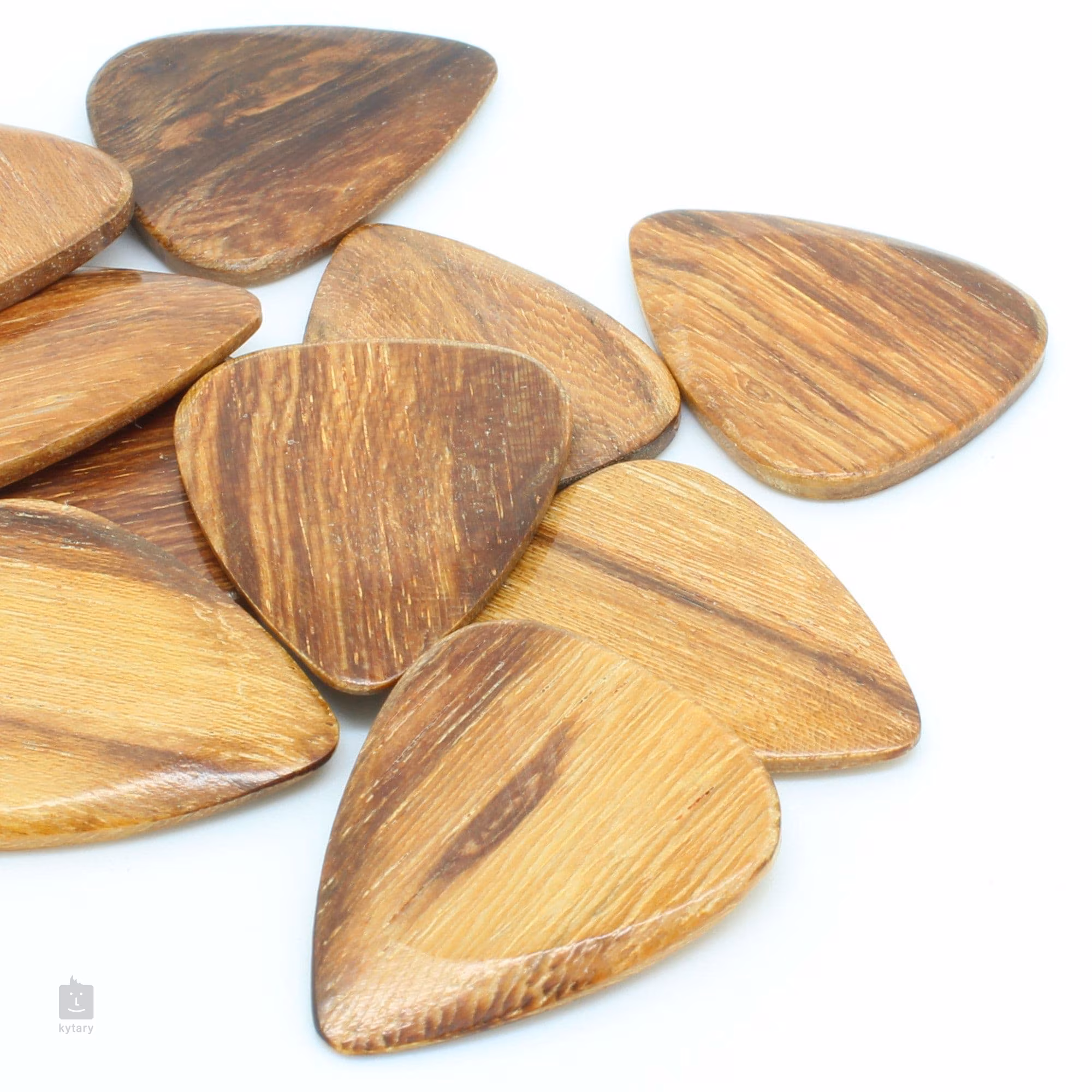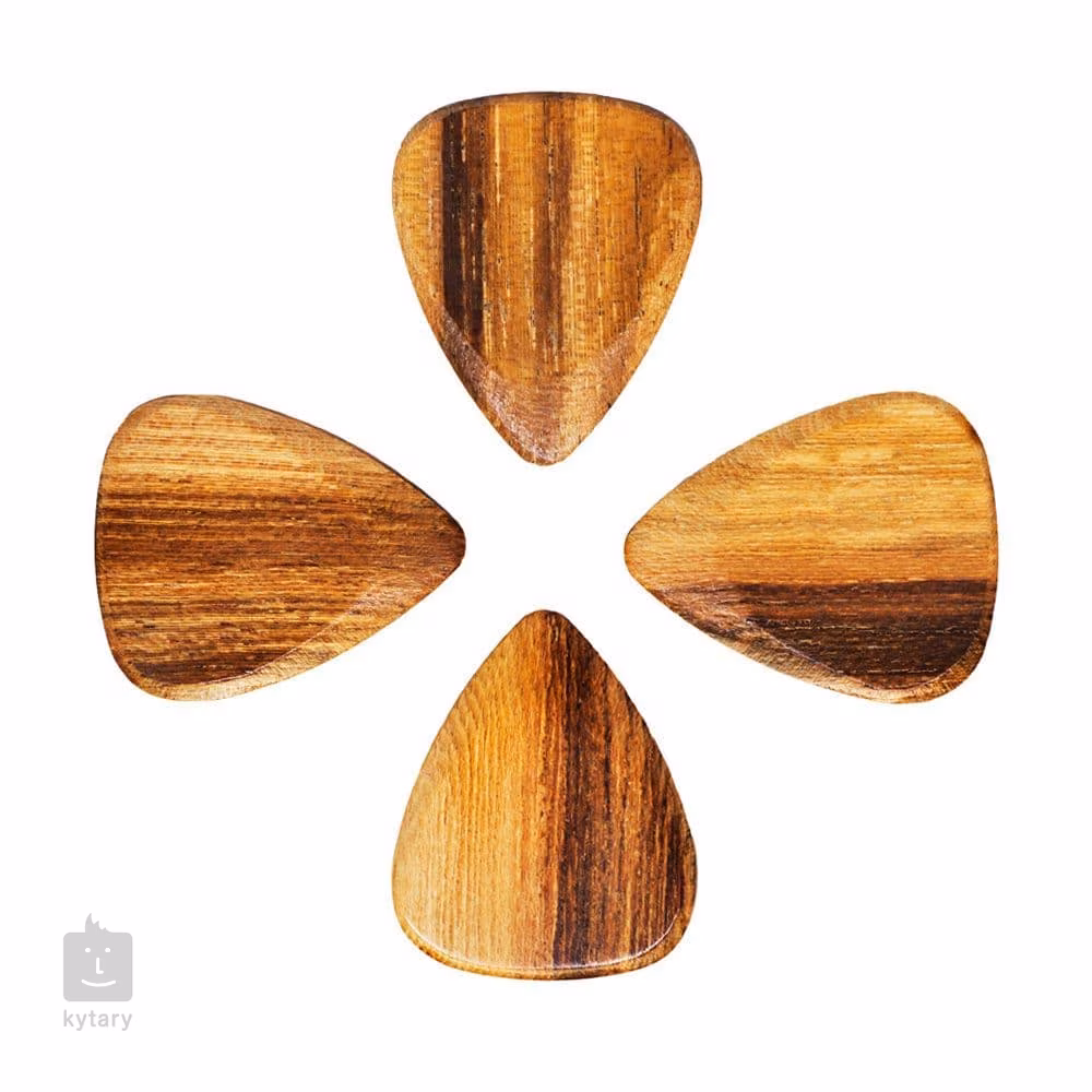 Ať už hledáte dárek pro nadšeného kytaristu nebo se jen pídíte po dokonalém zvuku a toužíte vyzkoušet trsátka z netradičních materiálů, u Timber Tones zajisté najdete, co potřebujete. Tato sada ukrývá čtyři trsátka vyrobená z ebenu Pale Moon, jež poskytuje zajímavou směs vřelého i zvonivého zvuku. Jeho tónové zabarvení závisí na barvě dřeva v oblasti hrotu – nazlátlé dřevo je měkčí a má teplejší tón, zatímco hnědé žíhání je tvrdší a zvukově průraznější. Trsátka mají tloušťku 2,4 mm, která se směrem ke hrotu zužuje na 0,7 mm. Jsou ručně broušená a lakovaná.