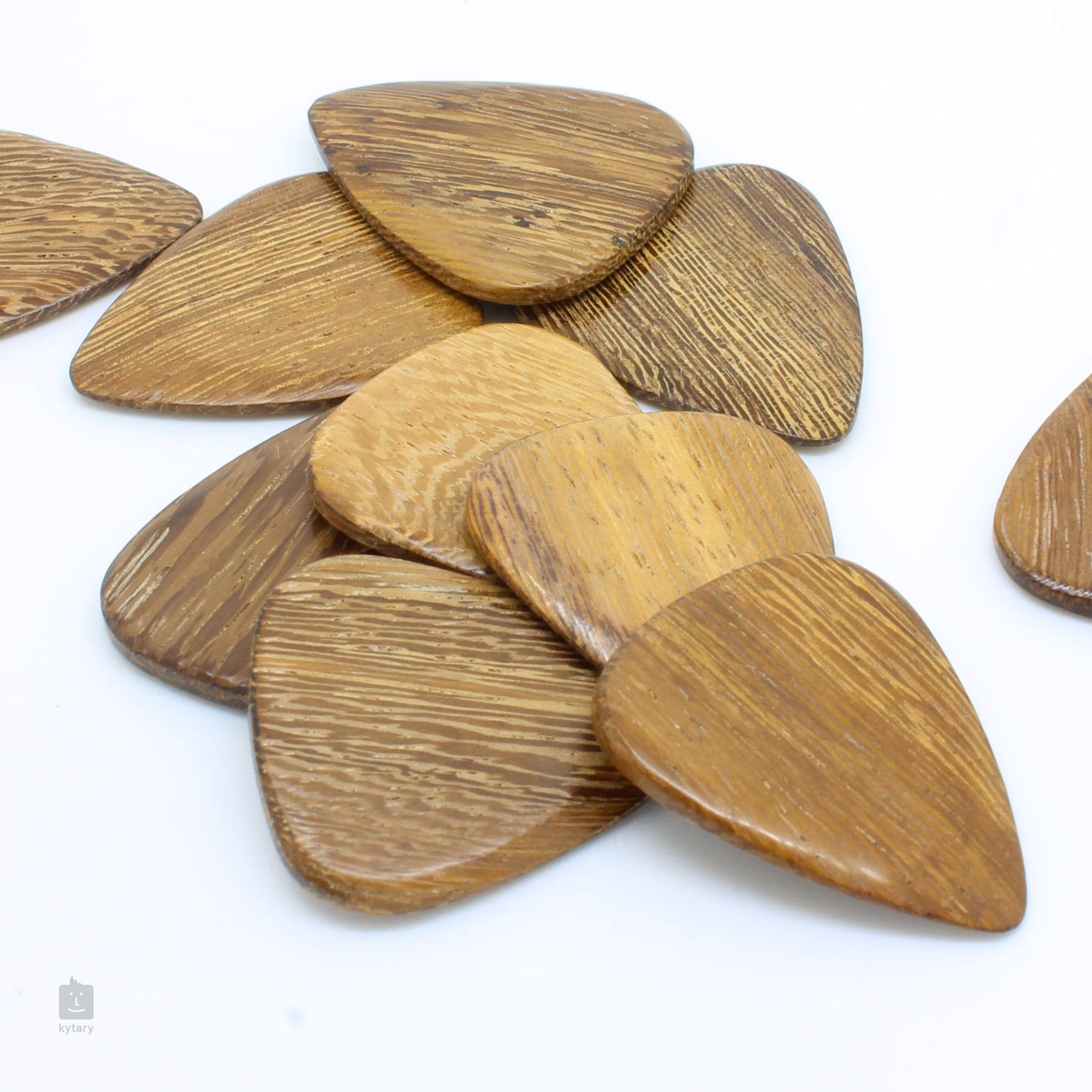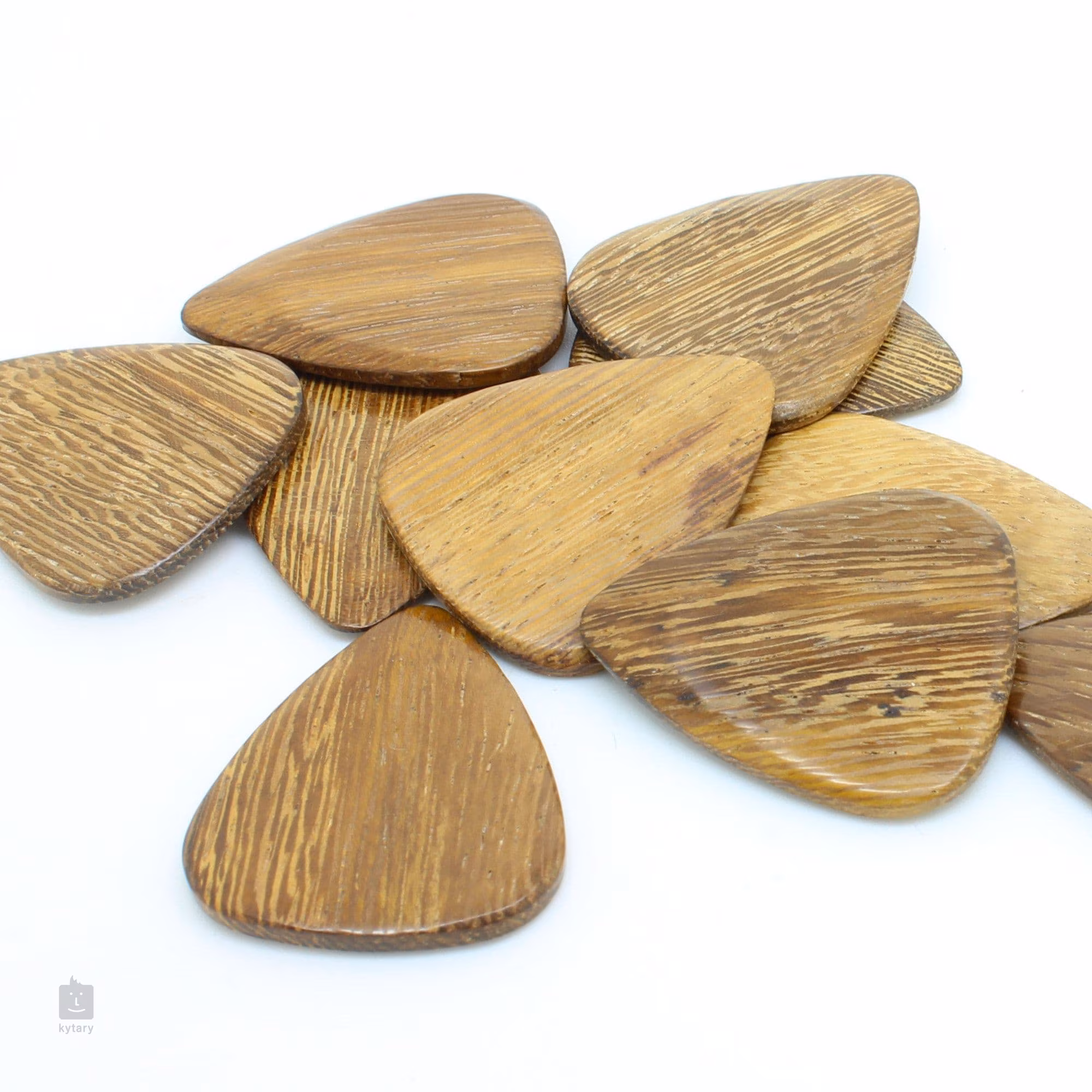 Ať už hledáte dárek pro nadšeného kytaristu nebo se jen pídíte po dokonalém zvuku a toužíte vyzkoušet trsátka z netradičních materiálů, u Timber Tones zajisté najdete, co potřebujete. Tato sada ukrývá čtyři trsátka vyrobená ze středně tvrdé dřeviny Thai Cassia, která produkuje vyvážený, frekvenčně neutrální tón. Trsátka mají tloušťku 2,4 mm, která se směrem ke hrotu zužuje na 0,7 mm. Jsou ručně broušená a lakovaná.