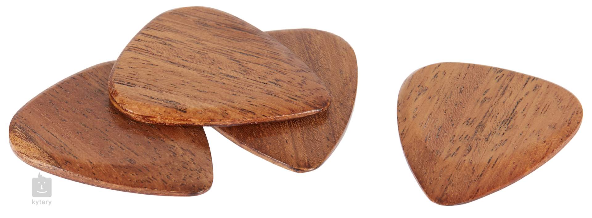 Ať už hledáte dárek pro nadšeného kytaristu nebo se jen pídíte po dokonalém zvuku a toužíte vyzkoušet trsátka z netradičních materiálů, u Timber Tones zajisté najdete, co potřebujete. Tato sada ukrývá čtyři trsátka vyrobená z velmi měkké dřeviny Thai Sindora, která produkuje výjimečně vřelý a kulatý tón, vhodný zejména pro akustické kytary. Trsátka mají tloušťku 2,4 mm, která se směrem ke hrotu zužuje na 0,7 mm. Jsou ručně broušená a lakovaná.