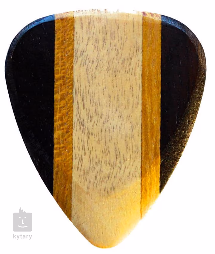 Ať už hledáte dárek pro hudebního nadšence nebo se jen pídíte po dokonalém zvuku a toužíte vyzkoušet trsátka z netradičních materiálů, u Timber Tones zajisté najdete, co potřebujete. Dřevěná trsátka ze série Zone Tones Deluxe jsou vyrobena spojením tří různých exotických dřev, což jim dodává výjimečný design. Prostřední dřevina, která dosahuje na špičku trsátka, určuje výsledný tón. Každý kus je ručně broušený a lakovaný. V prostředku tohoto modelu se nachází měkký javor, jenž vaší kytaře dodá vřelý a kulatý tón. Na stranách najdete barevně kontrastní Jackfruit a eben. Trsátko má tloušťku 2,5 mm, která se směrem ke špičce zužuje na 0,7 mm.