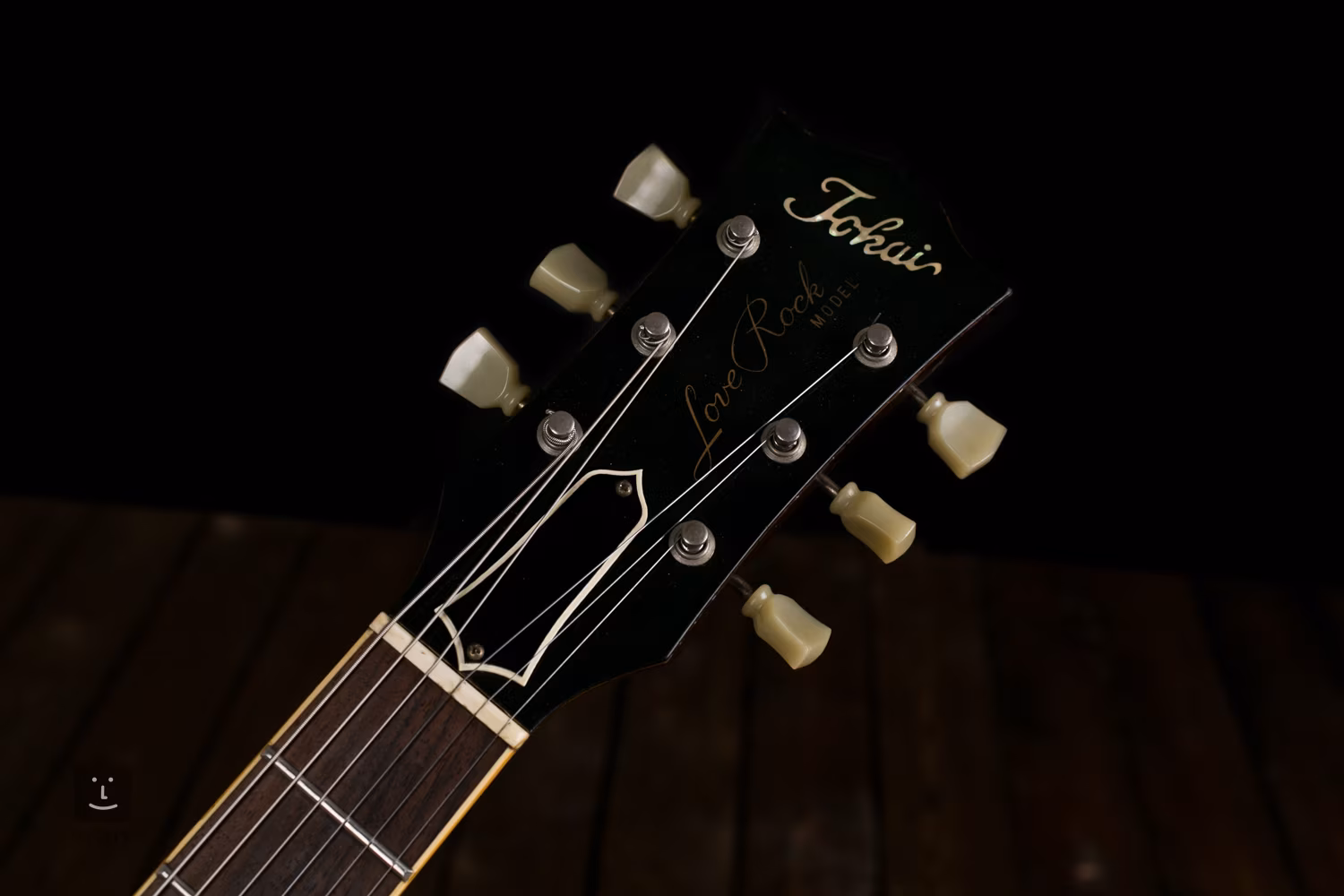 Kytary s označením Love Rock jsou přesnými kopiemi původních Les Paulů a v tomto případě jde o originální japonský model z počátku 80. let, nezaměňujte ho se současným modelem Love Rock, tento nástroj je vyroben s důrazem na detail a použité materiály byly pečlivě vybírány. Tělo je tvořeno dvěma kusy masivního mahagonu a nachází se na něm vrchní dýha z fládrovaného javoru. Mahagonový krk je osazen palisandrovým hmatníkem s kostěnýn nultým pražcem, na hlavě jsou původní mechaniky Tokai. Hardware je též původní japonský, ať už jde o kobylku a struník nebo butikové PAF snímače Goto.