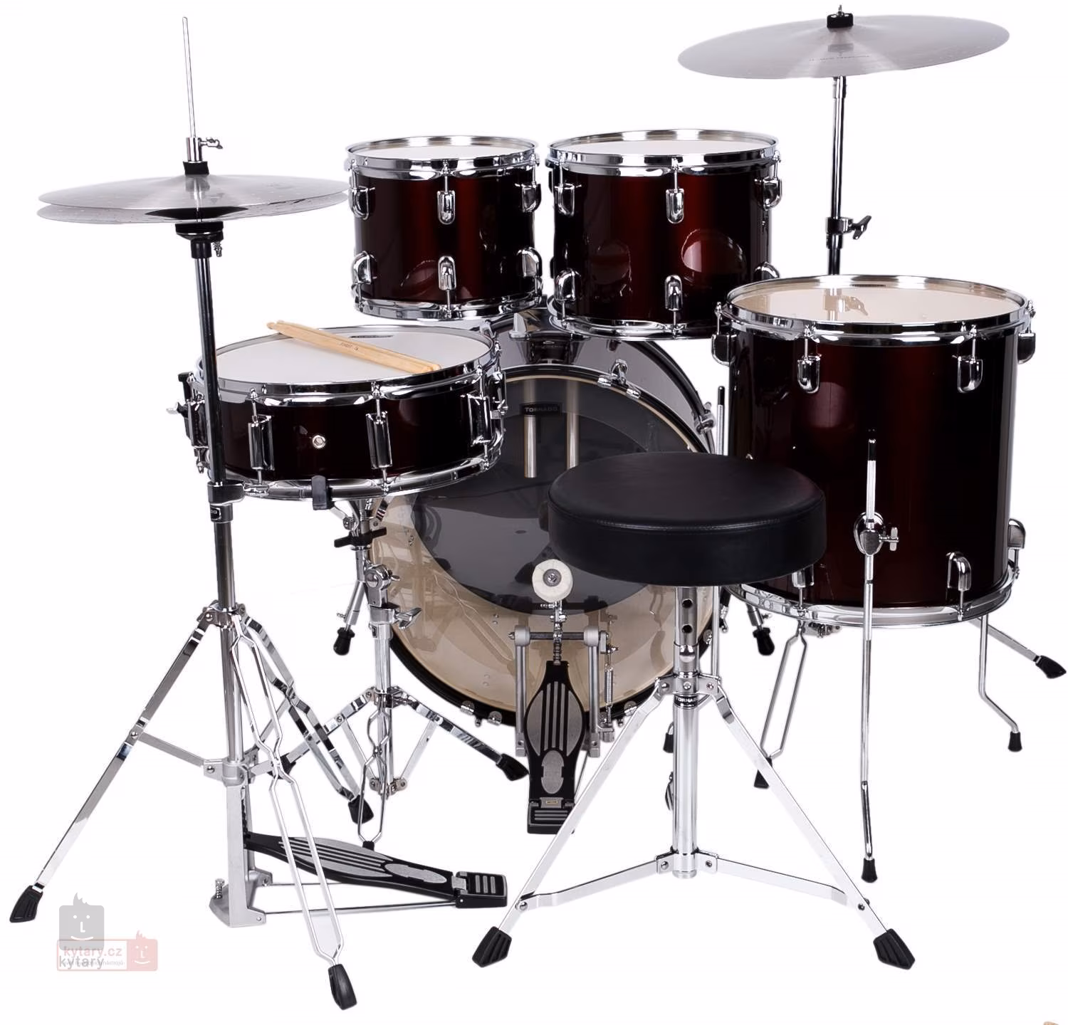 Bicí soupravy této značky pak obsahují vše, co bubeník potřebuje – v rámci 3 odlišných nabízených konfigurací si vyberete dobře vybavenou soupravu dle Vašich představ, a zárovň dostanete 13” hi-hat a 18” crash ride činely a potřebný hardware, tedy dva tom holdery, snare stojan S200-TND, hi-hat stojan H200-TND, rovný činelový stojan C200-TND, single pedál k basovému bubnu P200-TND, bubenickou stoličku a pár paliček.