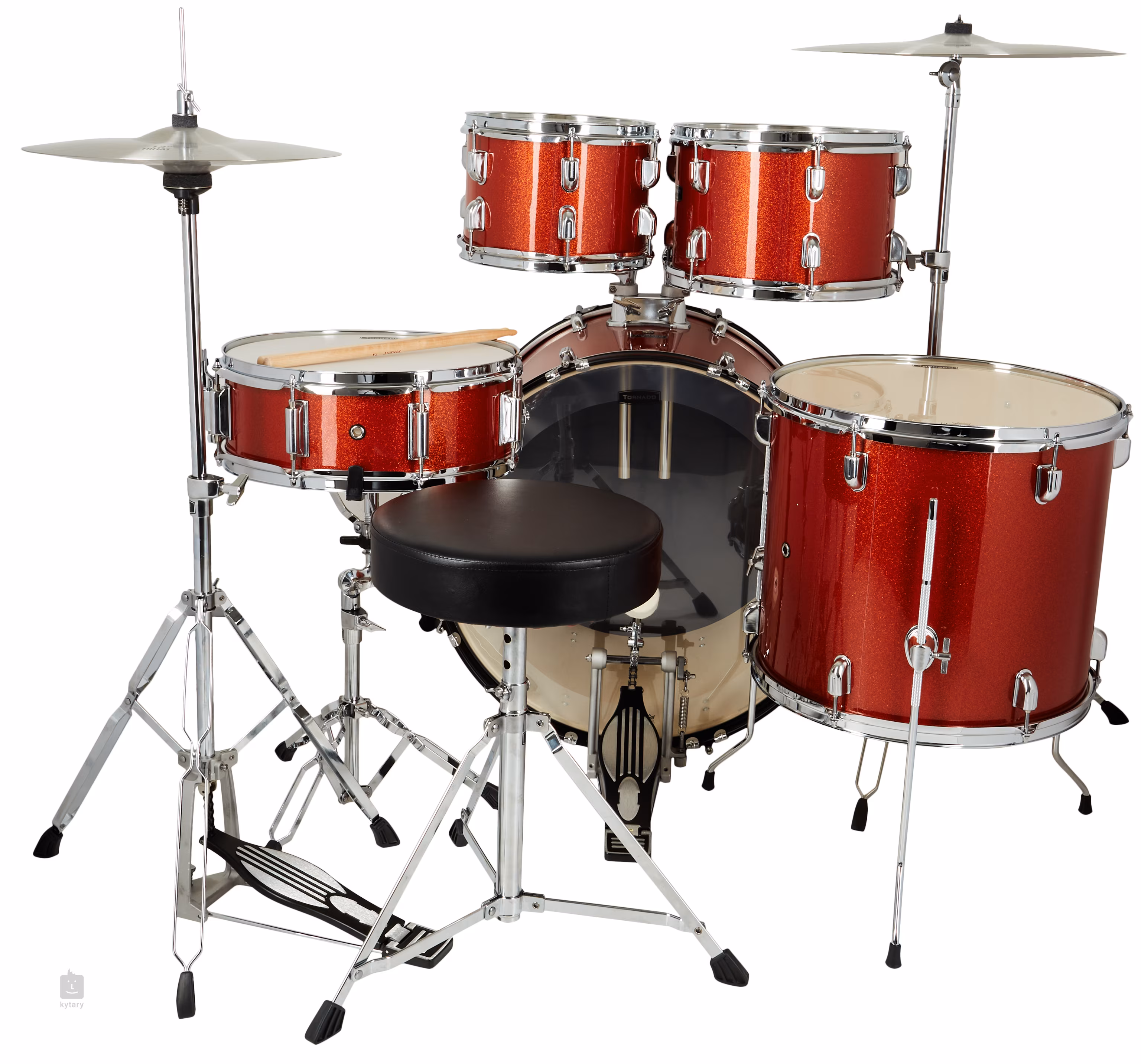 Bicí soupravy této značky pak obsahují vše, co bubeník potřebuje – v rámci 3 odlišných nabízených konfigurací si vyberete dobře vybavenou soupravu dle Vašich představ, a zárovň dostanete 13” hi-hat a 18” crash ride činely a potřebný hardware, tedy dva tom holdery, snare stojan S200-TND, hi-hat stojan H200-TND, rovný činelový stojan C200-TND, single pedál k basovému bubnu P200-TND, bubenickou stoličku a pár paliček.