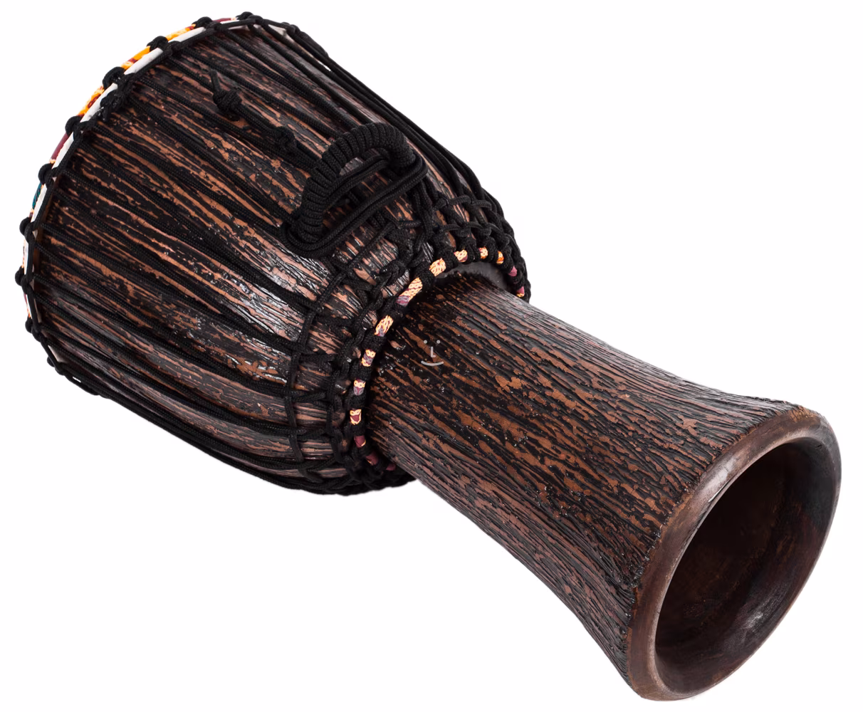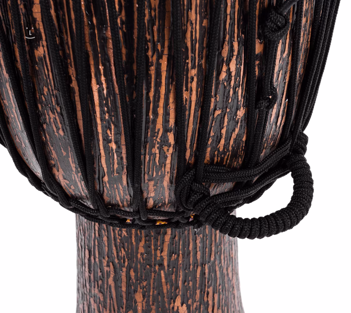 Djembe je vyrobené ručně z akusticky spolehlivého dřeva mangovníku. Blánu z výběrové kozí kůže napínají pevná lanka o průměru 5 mm, která zajišťují stabilní a dlouhotrvající ladění. Použité materiály jsou zárukou unikátního zvuku a dlouhé životnosti.