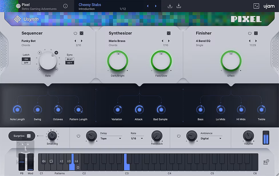 Usynth PIXEL vás přenese do dob klasických herních konzolí 80. a 90. let. Ve spolupráci s legendárním skladatelem Davidem Wisem (Donkey Kong Country) vznikl virtuální instrument, který představuje pokladnici klasických konzolových zvuků, které jsou tvořeny nejmodernějším syntezátorovým engine.