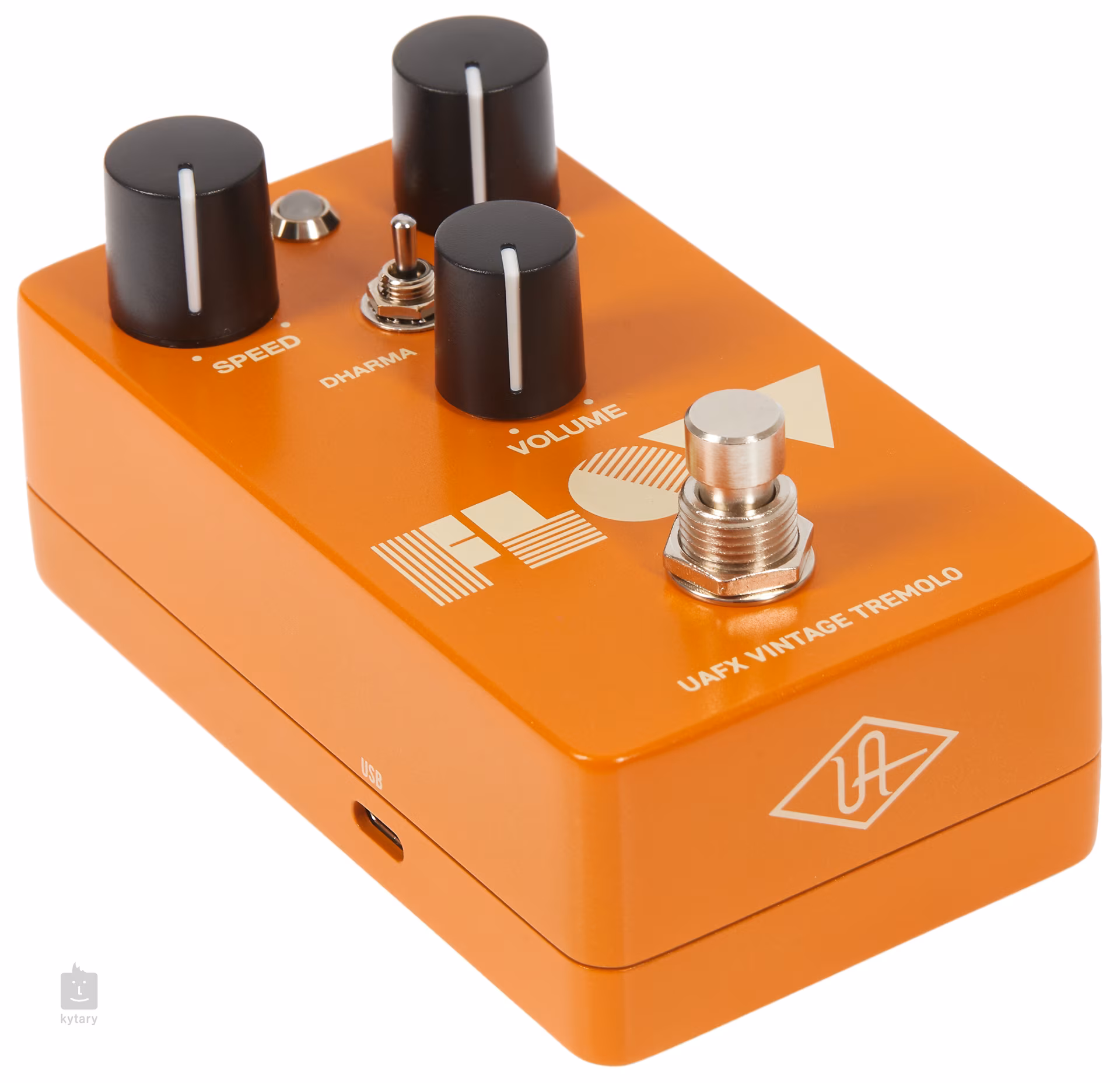 Pedálový efekt Universal Audio Flow Vintage Tremolo nabízí v kompaktním šasi autentické emulace tří tremolo efektů jak je znáte z předzesilovačů lampových aparátů. Konkrétně můžete vybírat mezi mody Dharma (harmonické tremolo), 65 (klasické optické tremolo lampových aparátů) a Square (agresivní square wave tremolo).
