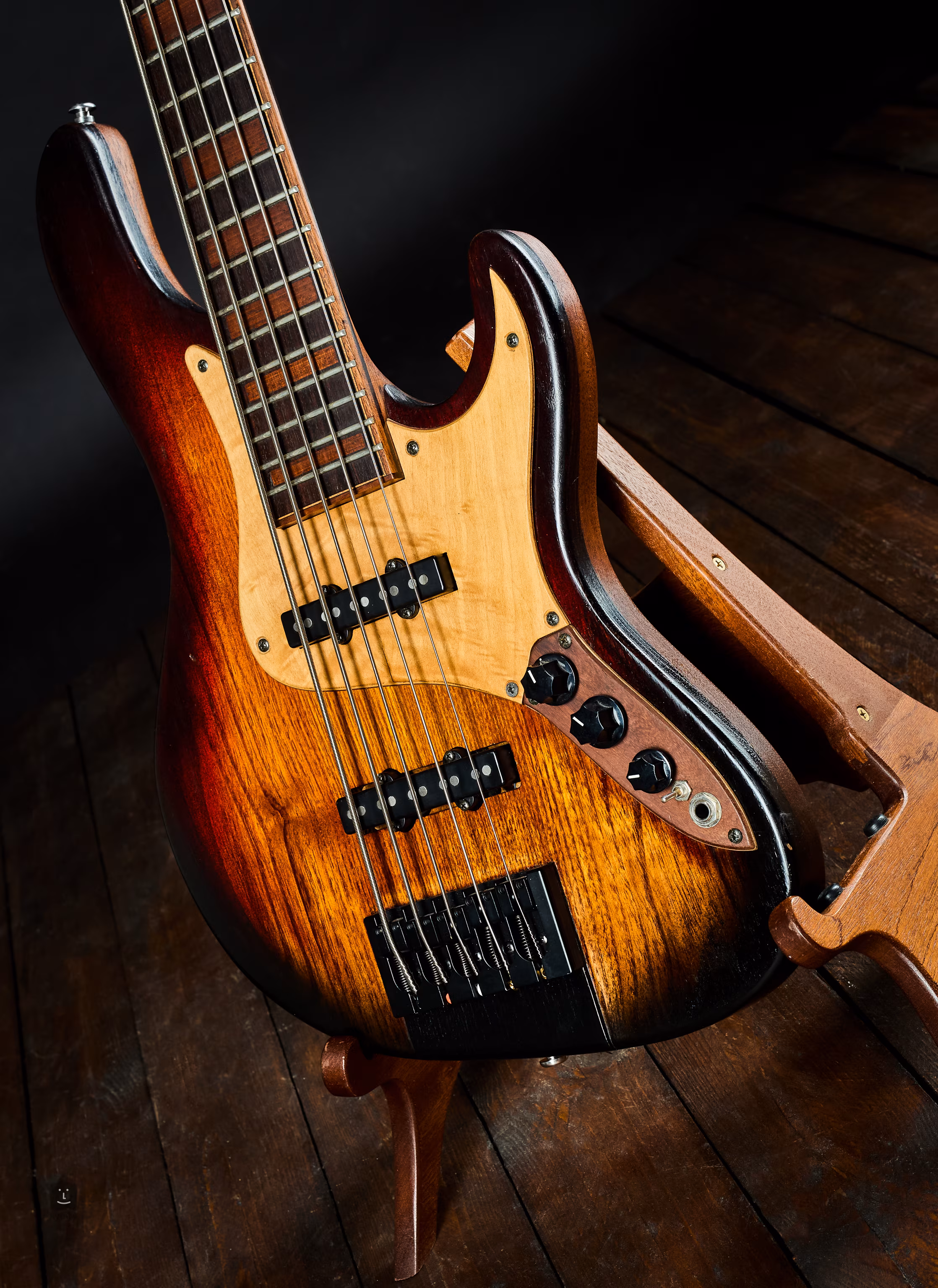Variace na pětistrunný jazz bass v raw finish úpravě, která akcentuje dřevo jako hlavní použitý materiál (ze dřeva je například i pickguard a control plate). Mahagonový krk je osazený ladicími mechanikami s 24 pražci.