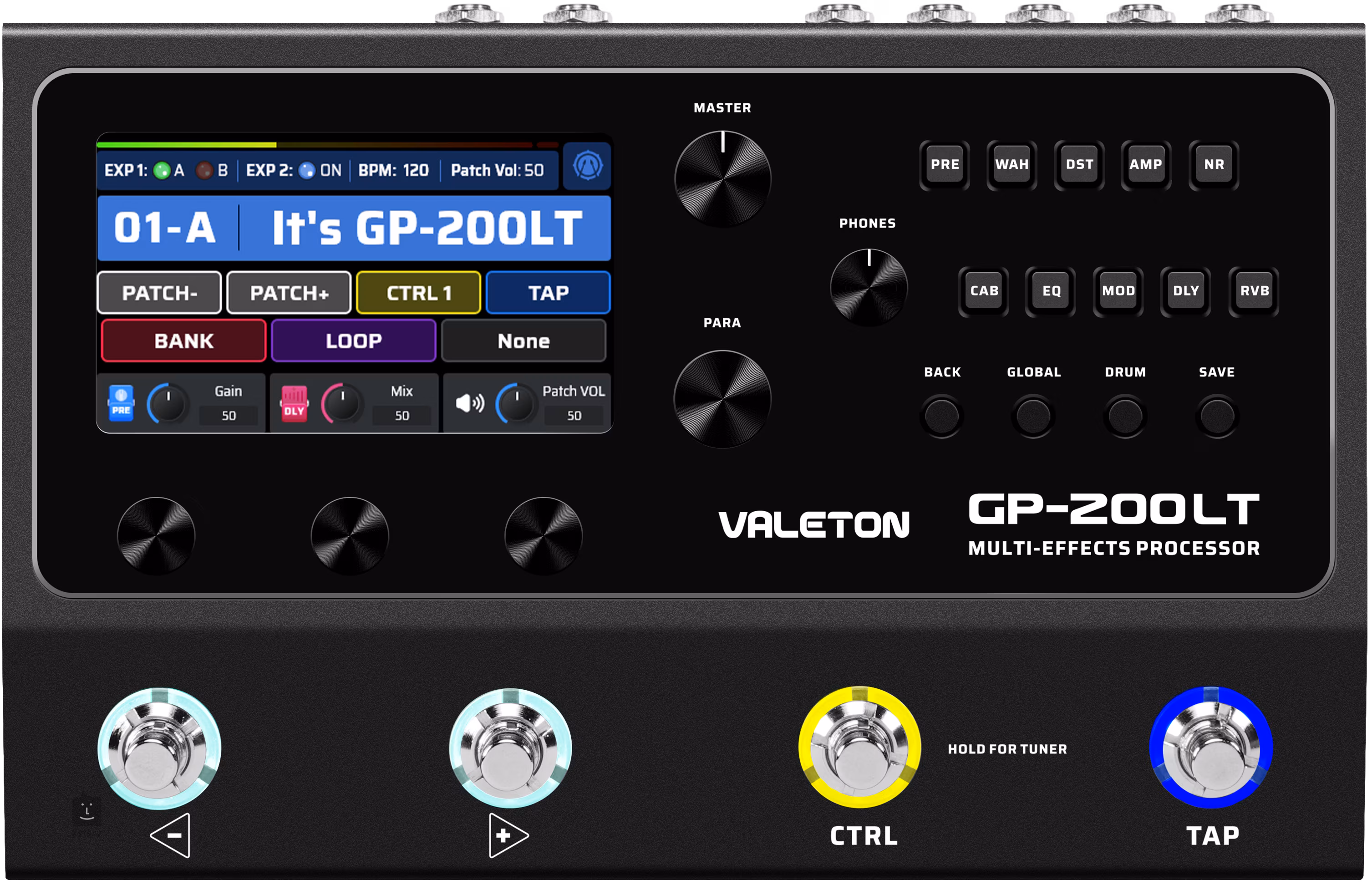 Valeton GP-200LT (Lite) je kompaktnější verzí kytarového multiefektu GP-200. Díky pokročilým modelingovým technologiím (pracuje v kvalitě 24-bit 44.1kHz) se může pochlubit pěkným organickým zvukem, který neurazí ani hráče s vysokými nároky.