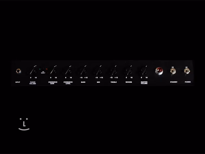 Ovladače Lead 20 se nachází na horní straně kabinetu, kde naleznete obligátní spínače Power a Standby, vstup pro kabel z Vaší kytary, jasnou červenou signalizační LED diodu, přepínač kanálů a osm potenciometrů s takzvanými „chicken-head“ knoby. Čistý kanál má svůj vlastní ovladač hlasitosti, pro zkreslený kanál jsou určeny potenciometry nastavující gain a hlasitost. Následuje klasický společný 3 pásmový ekvalizér sestávající z ovladačů Bass, Middle a Treble, dále vpravo naleznete ovladač zabudovaného pružinového reverbu značky Accutronics a nakonec potenciometr Master Volume.