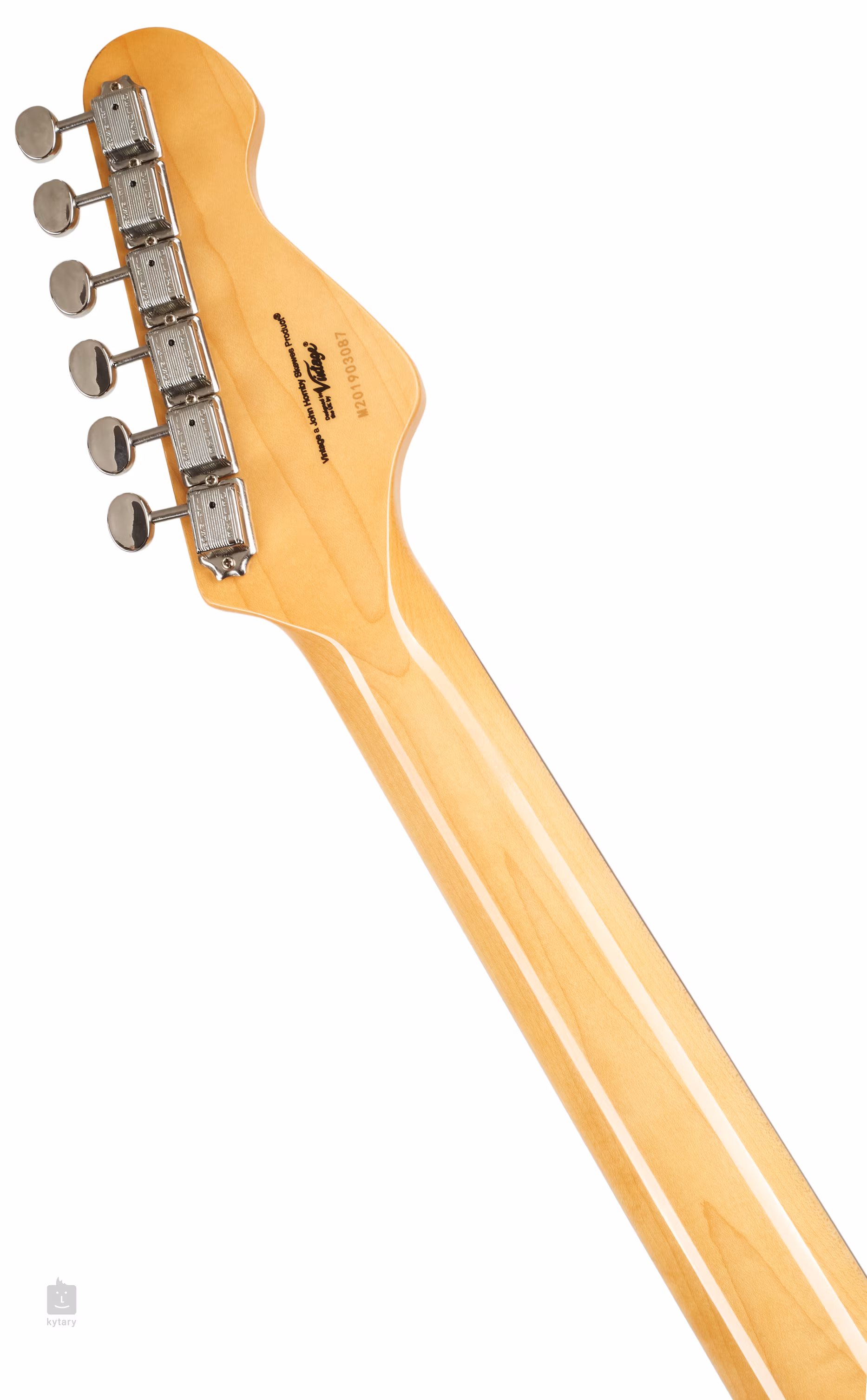 Vintage V6MSSB je stylová elektrická kytara pro leváky v double-cut designu ST modelů z řady Vintage Reissued Series. Tělo nástroje je zhotoveno z olše. K javorovému krku s pohodlným „Soft C“ profilem je přilepen palisandrový hmatník osazený dvaadvaceti pražci velikosti Medium.