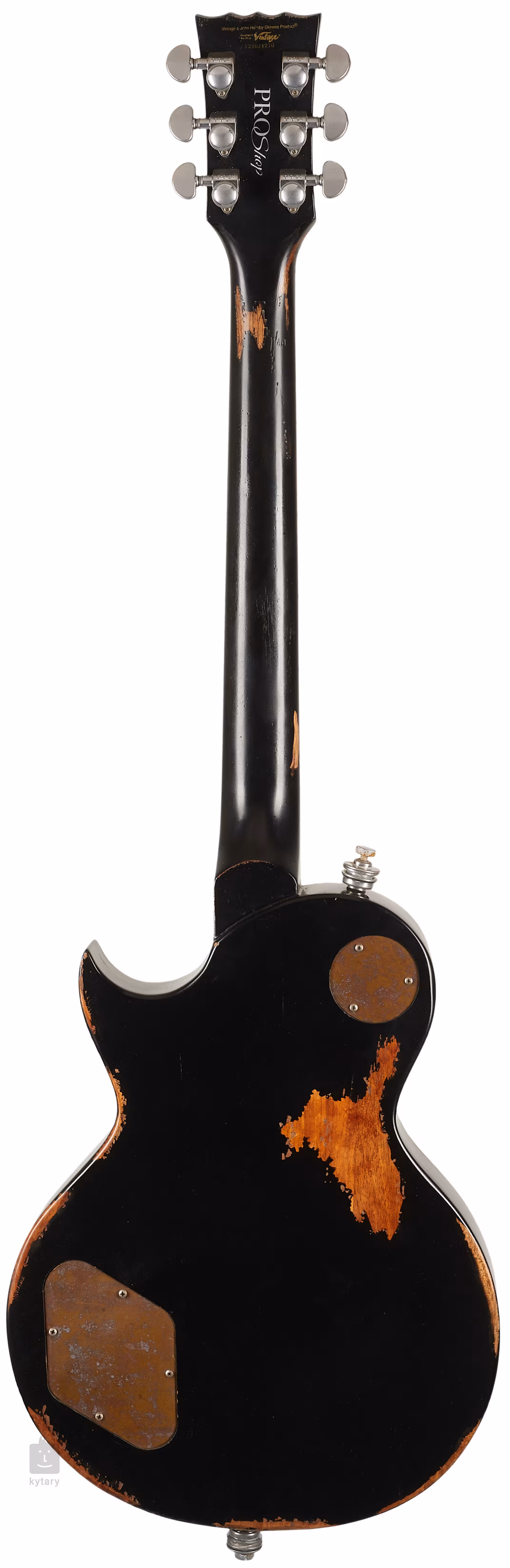 Elektrická kytara V100PU1270 v single-cut LP designu je nástroj z dílen Vintage Pro Shopu. Podobně jako kytary V100 z řady Icon nabízí dotažený design a feel léty hraných nástrojů, tj jemnější i výraznější prvky umělé patiny hardware a výrazné oprýskání černého laku (úprava Distressed).