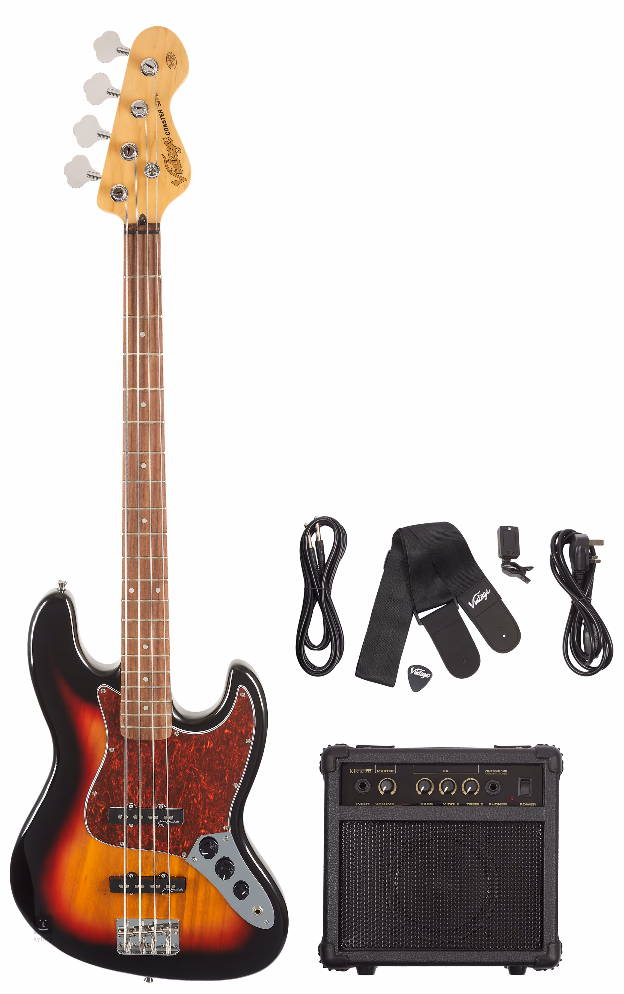 Vintage Coaster V49 je ideální volbou jako první „seriózní“ baskytara pro rockové nadšence, v tomto případě v kompletním balíčku, který muzikant potřebuje k životu. Balíček zahrnuje kromě baskytary i trsátko, popruh, sadu strun, obal, kabel, klipovou ladičku a 10W zesilovač Kinsman s Master Volume a 3-pásmovým EQ, což z něj dělá skvěle vybavenou sadu pro začínající hudebníky každého věku.