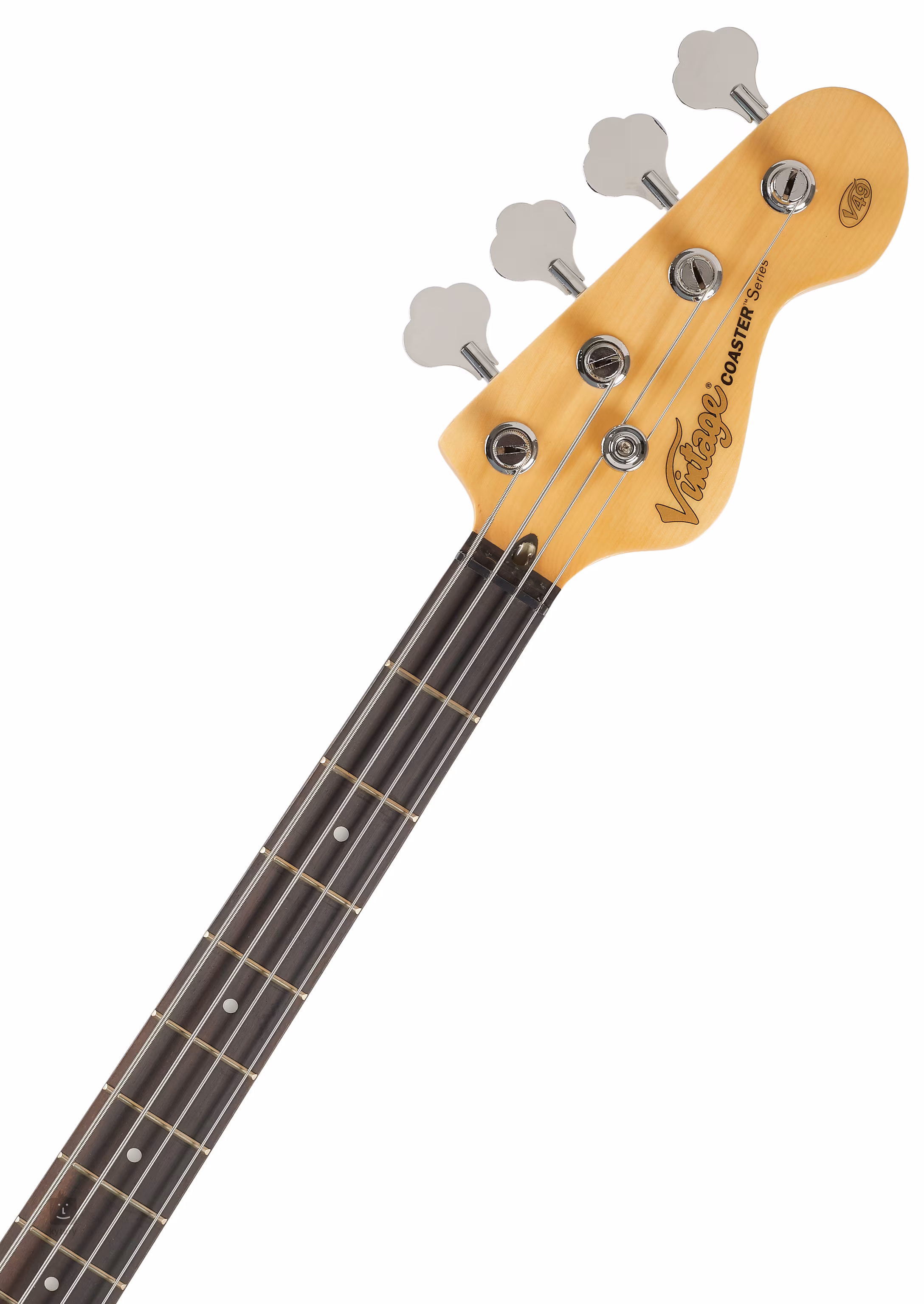 Vintage Coaster V49 je elektrická baskytara, která ztělesňuje tradiční řemeslné zpracování, herní pohodlí a univerzálnost zvuku, které si značka Vintage vydobyla mezi hudebníky a médii po celém světě. Se stylovým povrchem, 3-vrstvým pickguardem, chromovaným hardwarem a černými ovladači je V49 příkladem nadčasového designu. Nabízí masivní tělo z paulownie, šroubovaný javorový krkem a hmatníkem z palisandru, který je osazen dvaceti pražci.