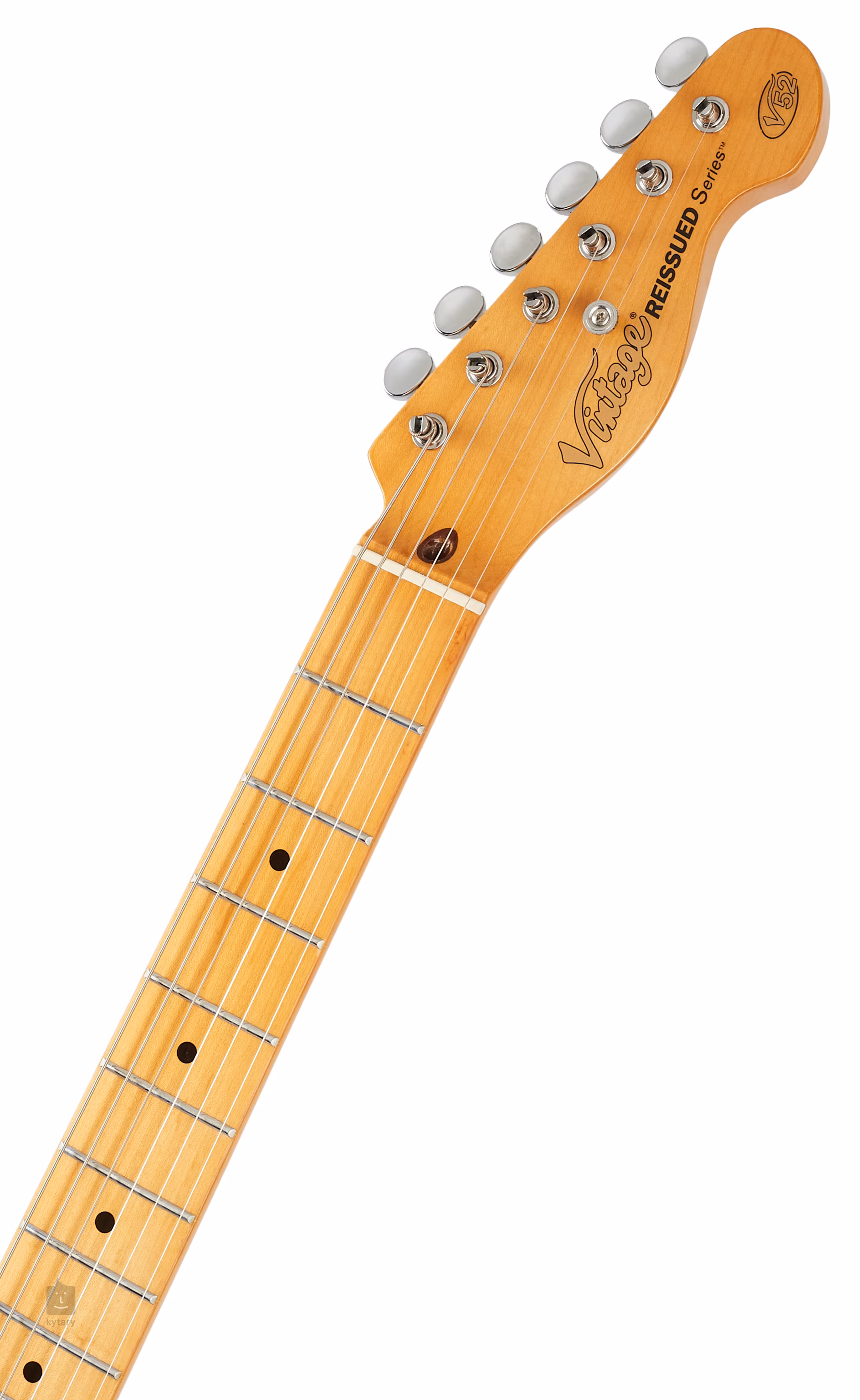 Vintage V52BS je stylová elektrická kytara v single-cut designu T modelů z řady Vintage Reissued Series. Tělo nástroje je zhotoveno z topolu. Javorový krk nabízí příjemný „Soft C“ profil, plochu hmatníku rozděluje dvaadvacet pražců velikosti Medium.