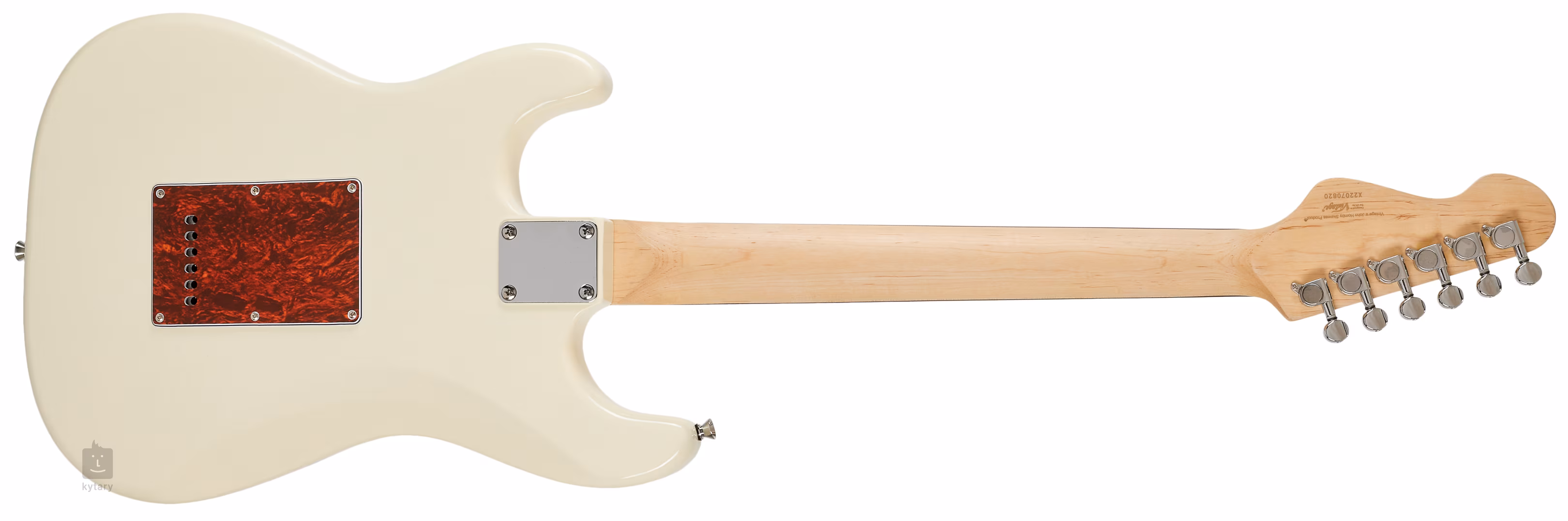 Struny jsou ukotveny v chromovaných Die-Cast mechanikách a vibratu s nastavitelnými sedly. Stylové zpracování podtrhují tradiční prvky v podobě třívrstvého pickguardu a pozičních teček na hmatníku.