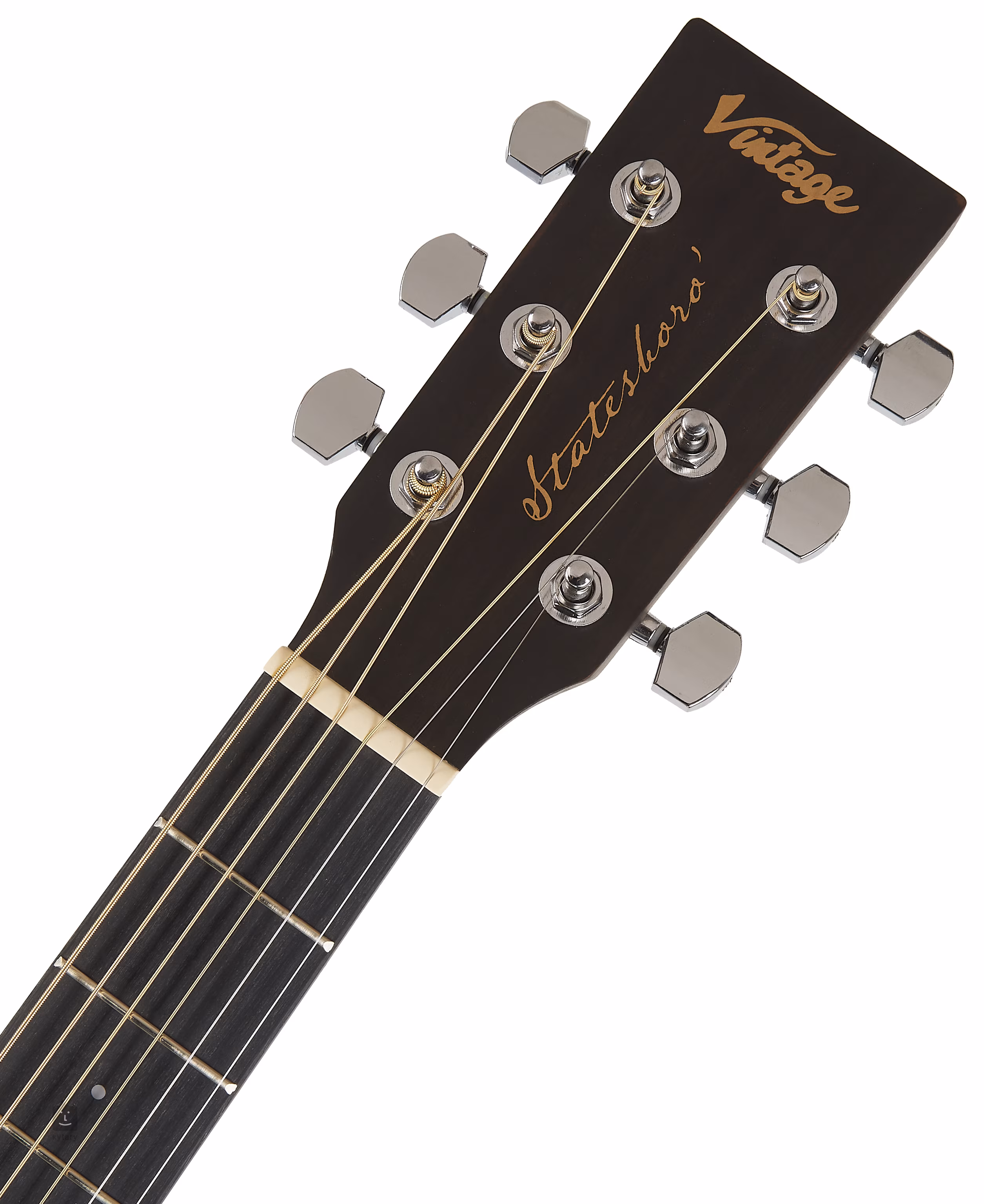 Akustické a elektroakustické kytary Vintage Statesboro vzniklé ve spolupráci s anglickým kytaristou a bluesovým historikem Paulem Brettem s sebou přináší auru ranného blues třicátých let dvacátého století. Tělo akustické kytary V660WK ve tvaru Orchestra je zhotoveno z laminovaného mahagonu. K mahagonovému krku je přilepen hmatník z kompozitního dřeva osazený dvaceti pražci. Orientaci po jeho ploše tradičně usnadňují poziční tečky.
