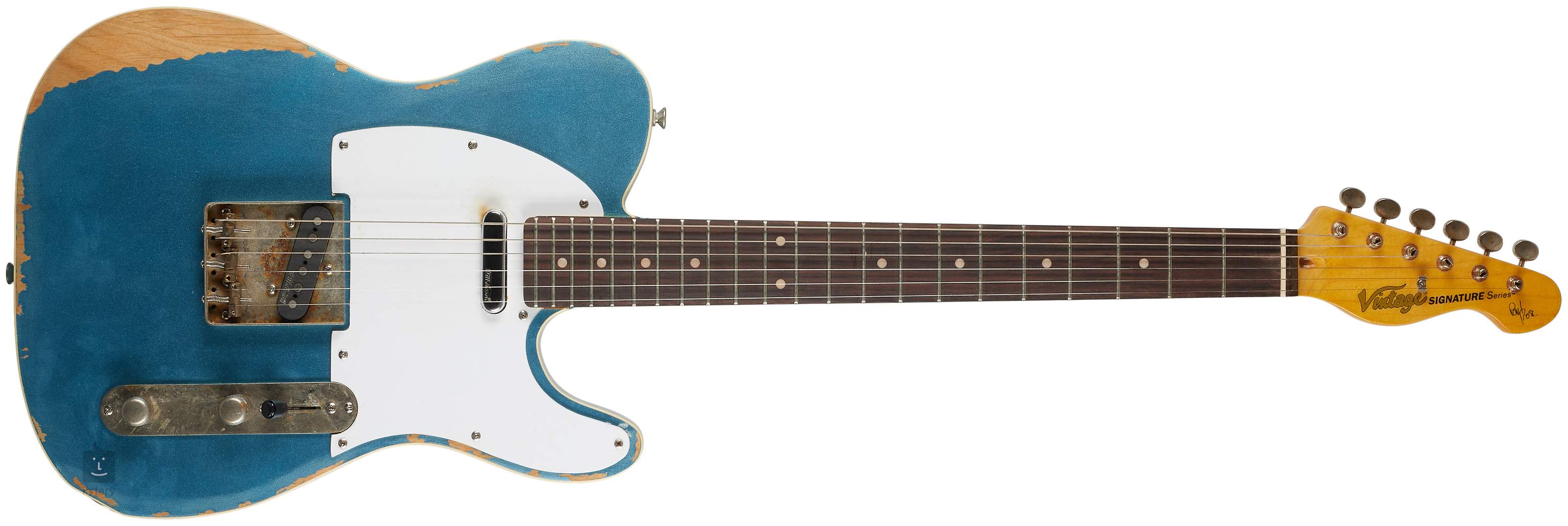 Elektrická kytara VINTAGE V66MRPR je signature model britského kytaristy Paula Rose. Olšové tělo kytary zdobí barevná úprava Gun Hill Blue a finiš s výraznými prvky umělé patiny. K přišroubovanému javorovému krku s příjemným “Soft C” profilem je přilepen palisandrový hmatník osazený dvaadvaceti pražci velikosti Medium.