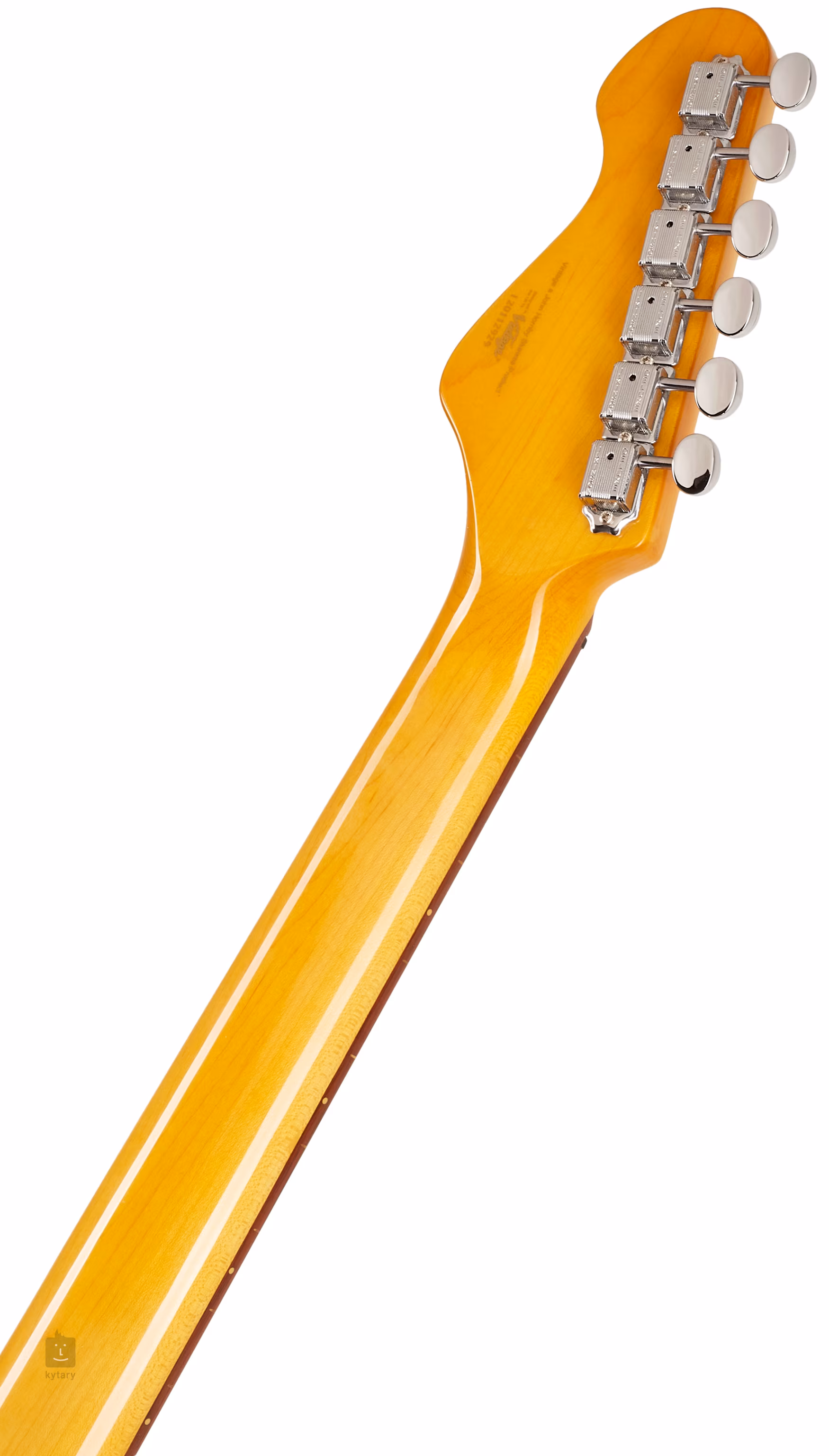 Olšové tělo kytary je v tomto případě osazeno trojicí single-coilových snímačů firmy Wilkinson, jejichž zvuk lze tvarovat pomocí ovladače hlasitosti, dvou tónových clon a pětipolohového přepínače. Celkový tón si tak můžete přizpůsobit přesně podle vašich potřeb.