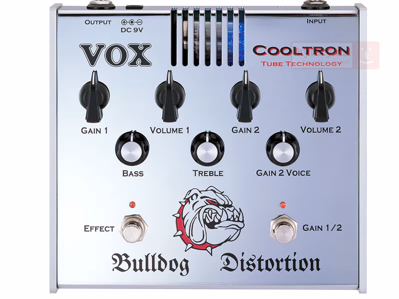 Bulldog Distortion je duálním distortion efektem z řady Vox Cooltron. Příslušnost k této řadě již na první pohled prozrazuje odolné kovové šasi a viditelní elektronka typu 12AU7. Na zadní straně krabičky nalezneme vstupní a výstupní jack a vstup pro adaptér. Na horní straně se nachází dva masivní spínače a sedm potenciometrů, tři s klasickými a čtyři s tzv. „chicken-head“ knoby.