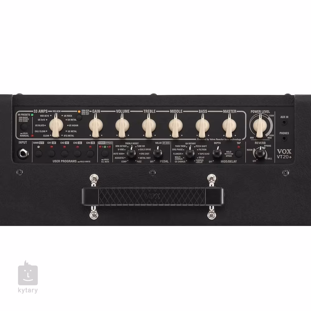 Vox VT-20+ disponuje výkonem 30 wattů, což je dávka více než postačující za účely domácího hraní a cvičení. Ve zvukové vlny tento výkon přetaví 8 palcový reproduktor z dílen Vox. Ohromnou výhodou je možnost ovládání výkonu bez jakéhokoli ovlivnění tónové charakteristiky – pomocí jediného potenciometru snížíte výkon na hranici 0,2 wattu a přesto neobětujete ani kapku svého zvuku. Ideální záležitost pro pozdní cvičení.