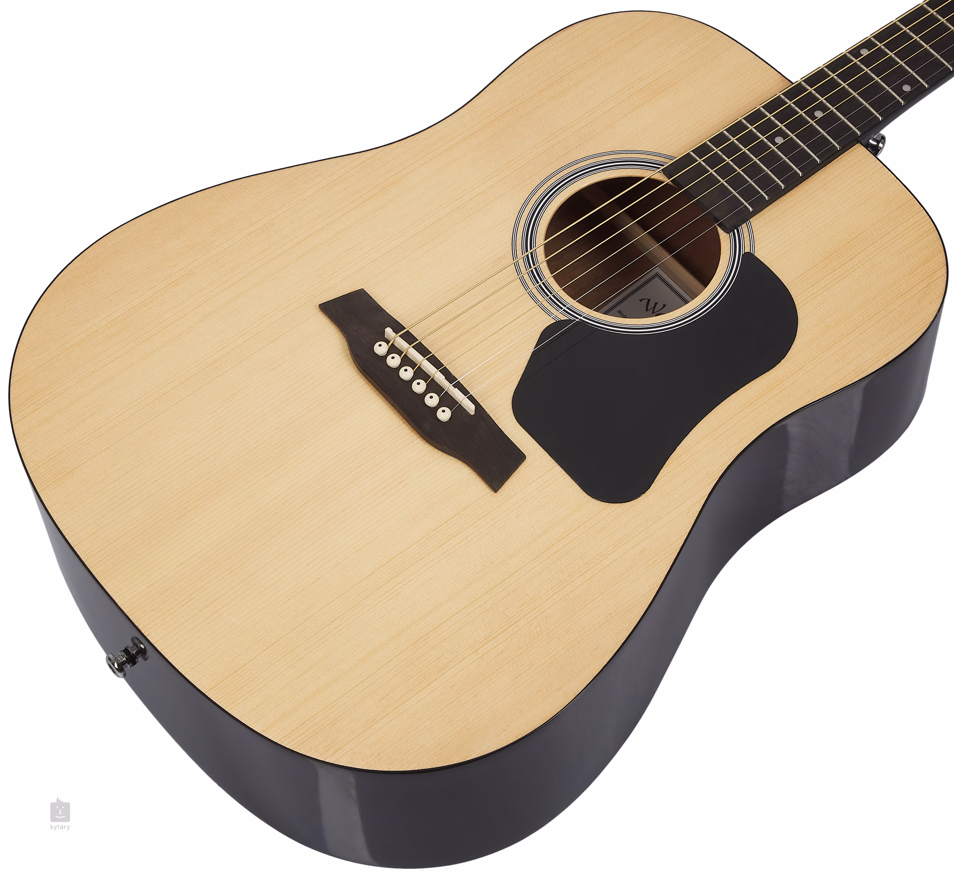 WAD350W je základní model akustické kytary z nabídky značky Walden, který použitím klasických prověřených dřev a kvalitou zpracování jistě osloví začínající kytaristy, ale neurazí ani zkušené hráče.