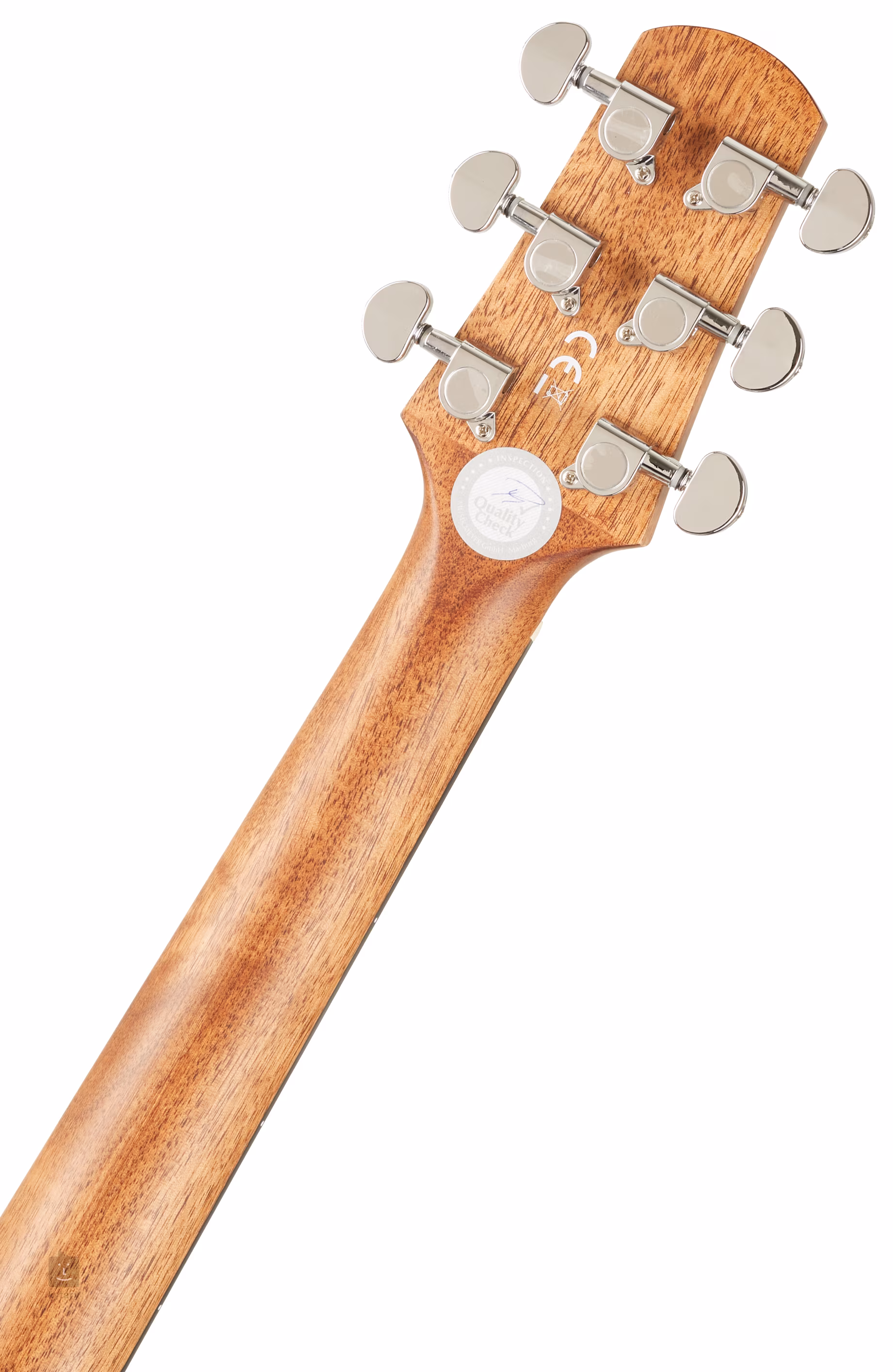 Struny jsou přes nultý a sedlový pražec z materiálu Nubone ukotveny v palisandrové kobylce a chromovaných Die-Cast ladících mechanikách. Vzhled kytary zpestřuje řada dalších praktických i dekorativní prvků v podobě matného finiše (UV polyesterový lak), černé lemovky, rozety složené z černobílých linek, perleťového loga na hlavici a praktického pickguardu z imitace želvoviny.