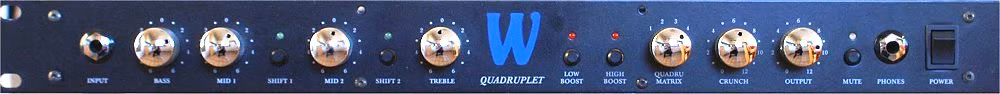 Warwick Quadruplet Preamplifier • Jednokanálový baskytarový předzesilovač 4 pásmový EQ crunch efektová smyčka sluchátkový výstup výstup pro ladičku s funkcí Mute 19` rack