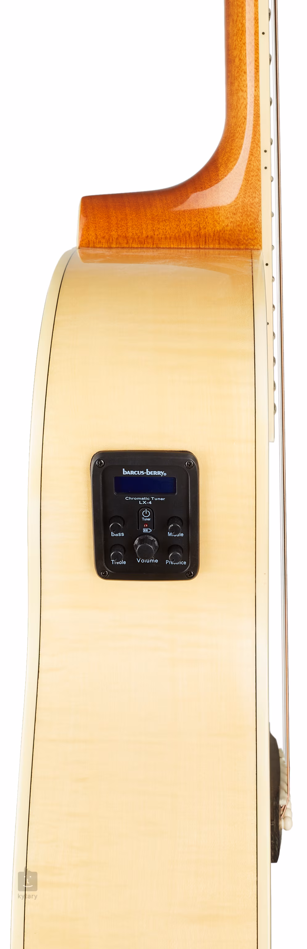 Možnost ozvučení nabízí preamp Barcus Berry s čtyřpásmovým ekvalizérem a integrovanou ladičkou zabudovaný do lubu kytary.