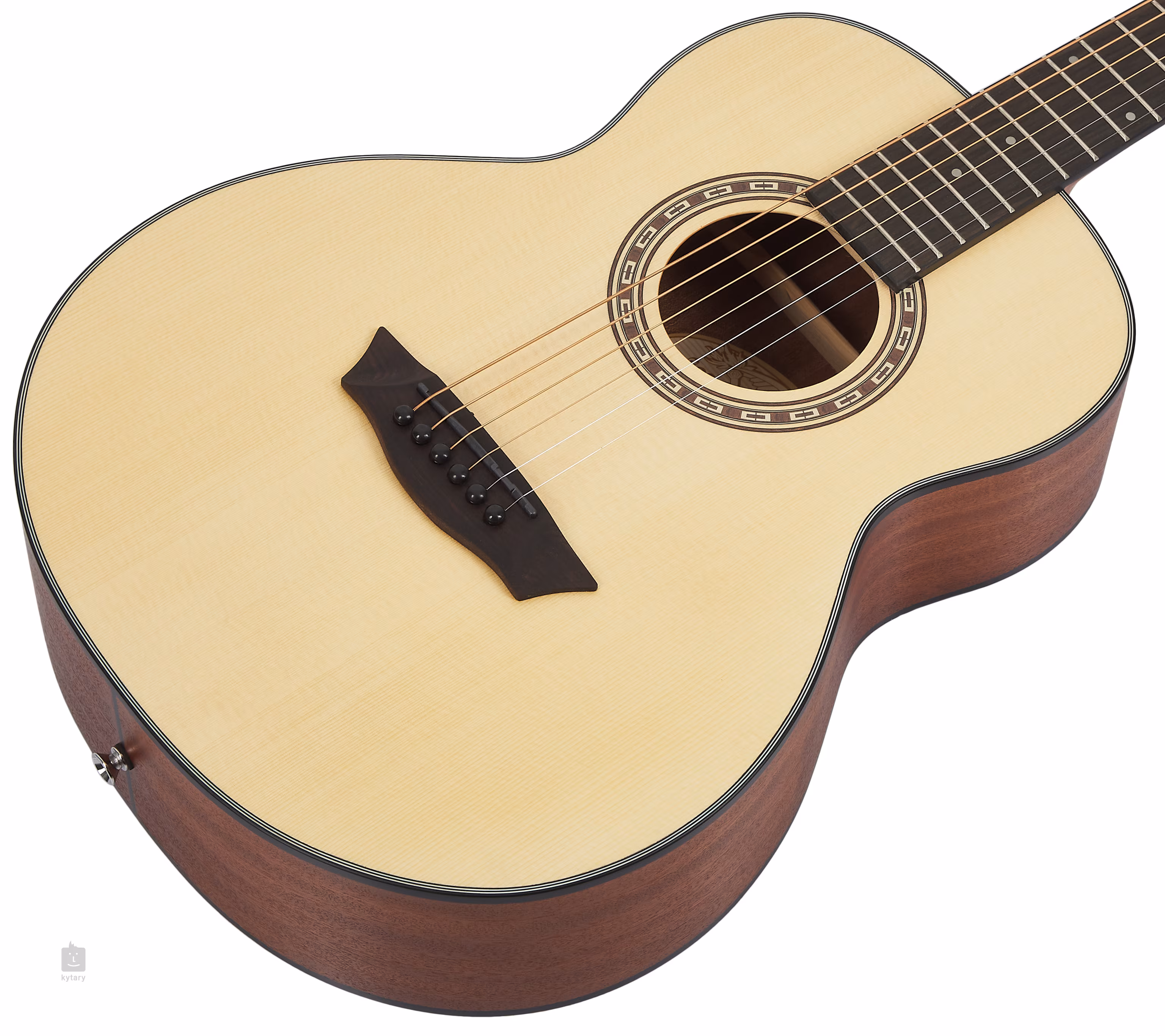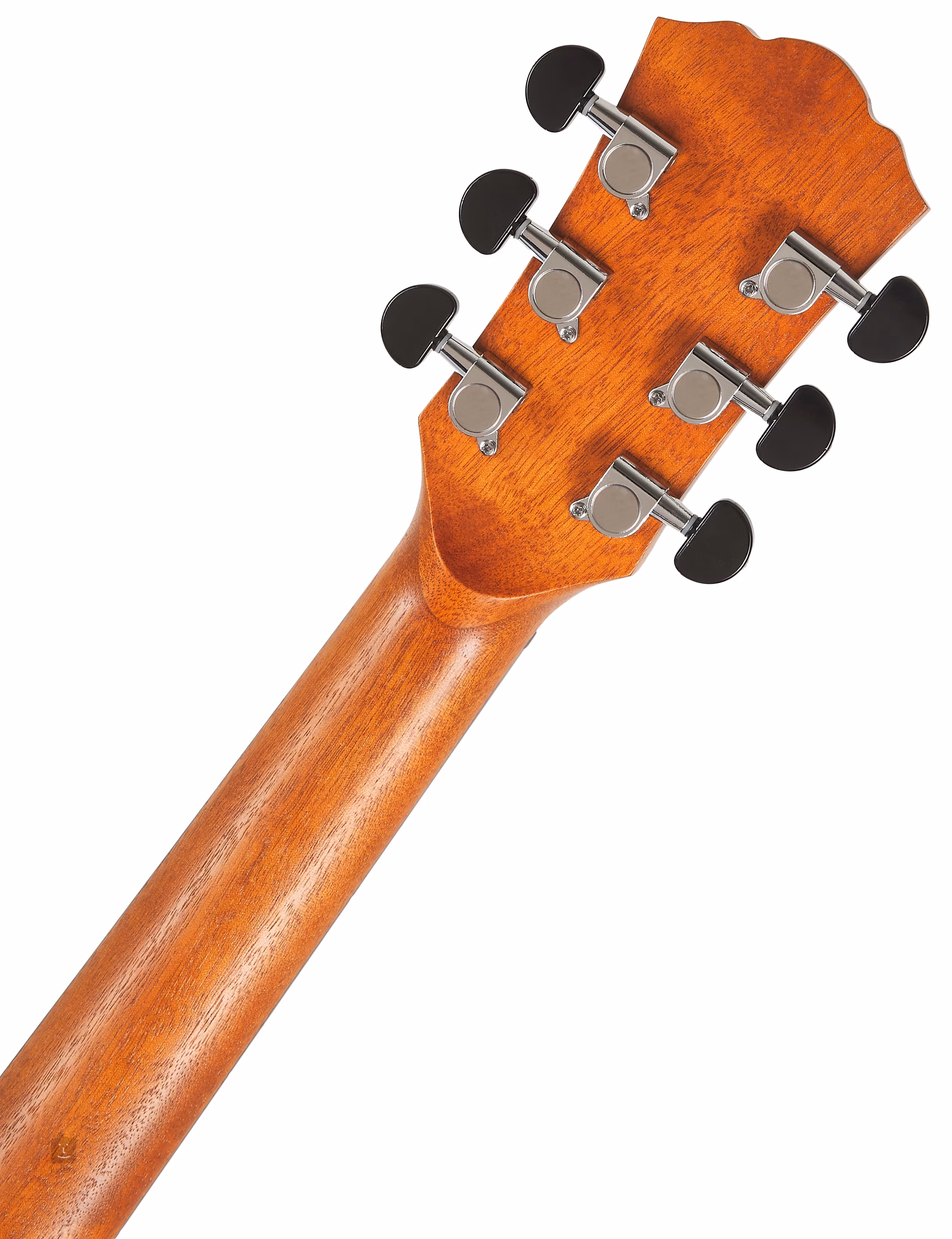 Kompaktnější tělo kytary je zhotoveno z topu ze smrkové překližky a zadní desky a lubů z překližovaného mahagonu. K mahagonovému krku, standardně připojenému k tělu na čtrnáctém pražci, je přilepen hmatník zhotovený z moderního kompozitního materiálu. Orientaci po jeho ploše tradičně usnadňují poziční značky. Struny jsou přes plastový nultý a sedlový pražec uchyceny v chromovaných litých (Die-Cast) mechanikách a kobylce z kompozitu.