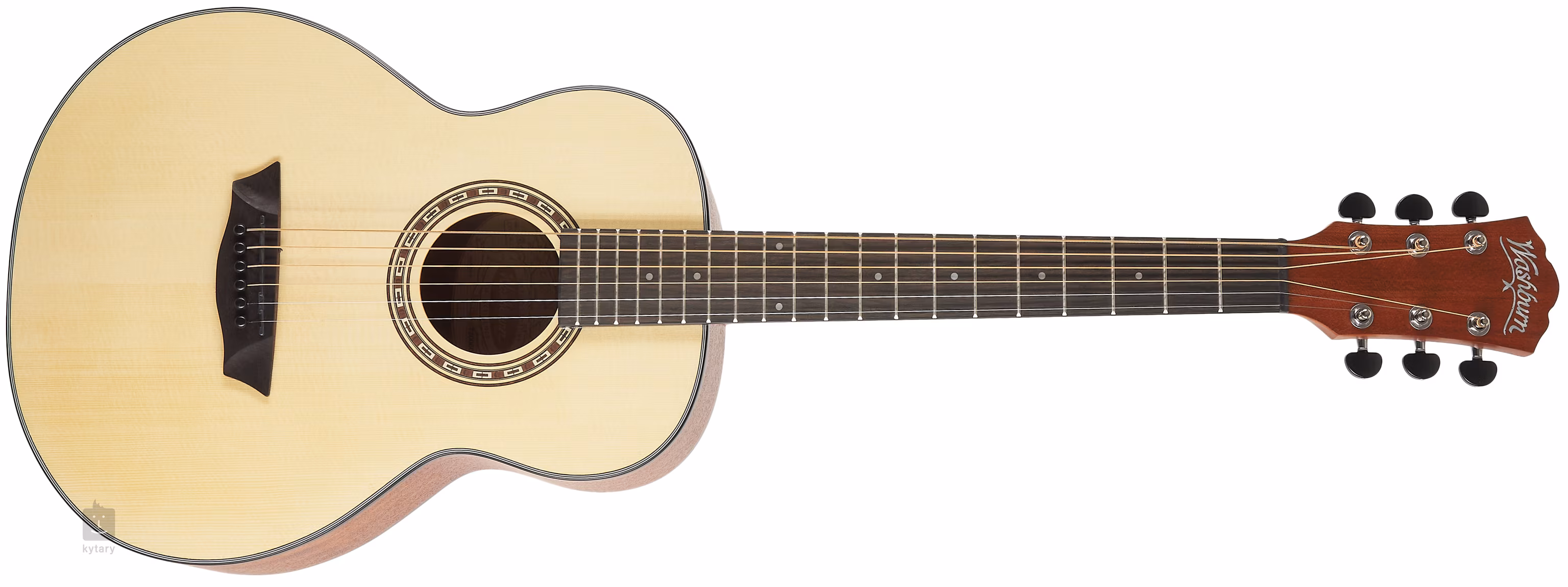 Washburn Apprentice AGM5K je cenově dostupná akustická kytara s kompaktnějším tělem v 7/8 velikosti a kratší menzurou vhodná pro začínající muzikanty i jako spolehlivý parťák pro muzikanty s toulavou povahou.