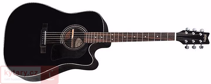 Elektroakustická kytara typu Dreadnought s výřezem, přední deska masivní smrk, luby a zadní deska mahagon, krk mahagon, piezo-snímač s preampem WT92, ladící systém Buzz Feiten