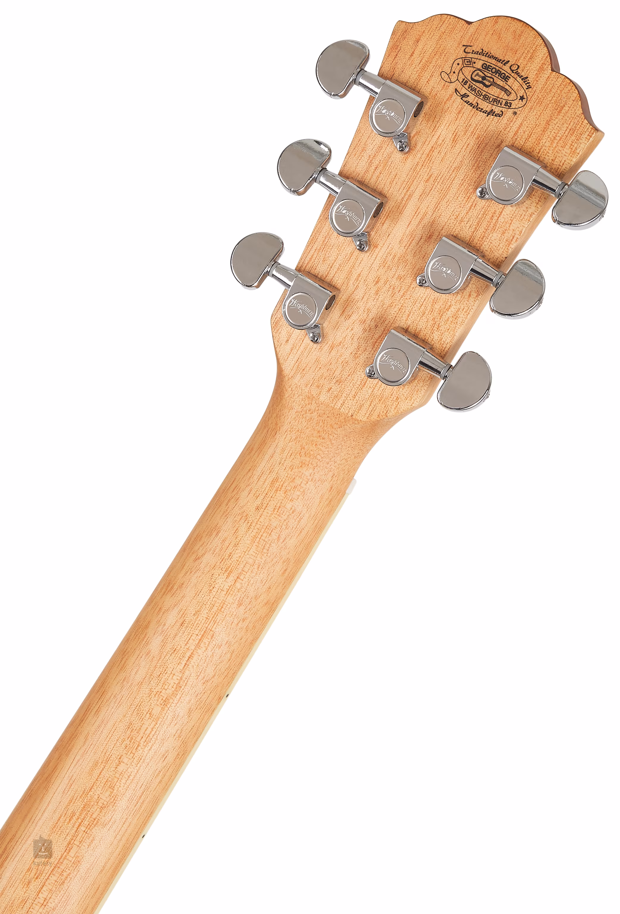 Přední deska kytary je zhotovena z masivního smrku, zadní deska a luby z překližovaného mahagonu. K mahagonovému krku, standardně připojenému k tělu na čtrnáctém pražci, je přilepen hmatník zhotovený z moderního kompozitního materiálu. Orientaci po jeho ploše usnadňují poziční tečky. Struny jsou přes plastový nultý a sedlový pražec uchyceny v chromovaných Die-Cast mechanikách a kobylce z kompozitu. Pěkné zpracování podtrhuje rozeta ve Washburn Heritage designu a lesklá úprava topu v barevném provedení Tobacco Sunburst.