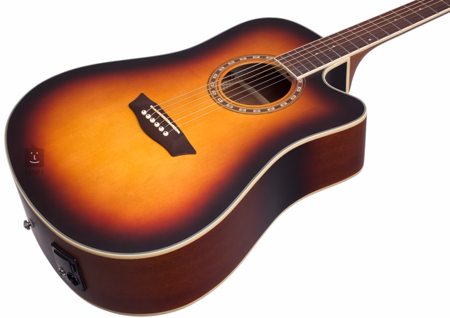 Struny jsou přes sedlový pražec uchyceny v kobylce, která je rovněž ze dřeva ovangkolu. O jejich dobrou rezonanci a sustain tak nemusíte mít obavy. Stabilitu ladění zaručují chromované Die-Cast ladící mechaniky. Kvalitu zpracování podtrhují lemovka obepínající tělo nástroje a zdobná rozeta kolem ozvučného otvoru. Továrně se na kytaru natahují struny D’Addario.