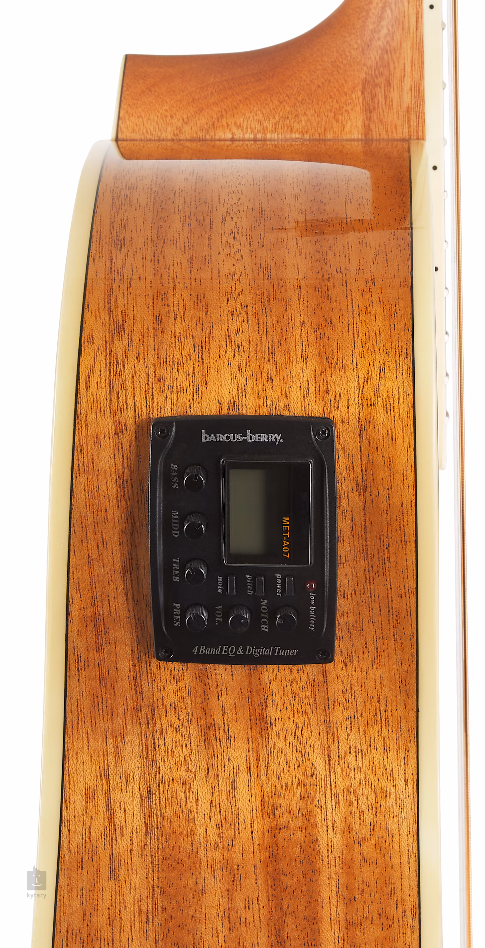 Možnost ozvučení nabízí preamp Barcus Berry s čtyřpásmovým ekvalizérem a integrovanou ladičkou zabudovaný do lubu kytary.