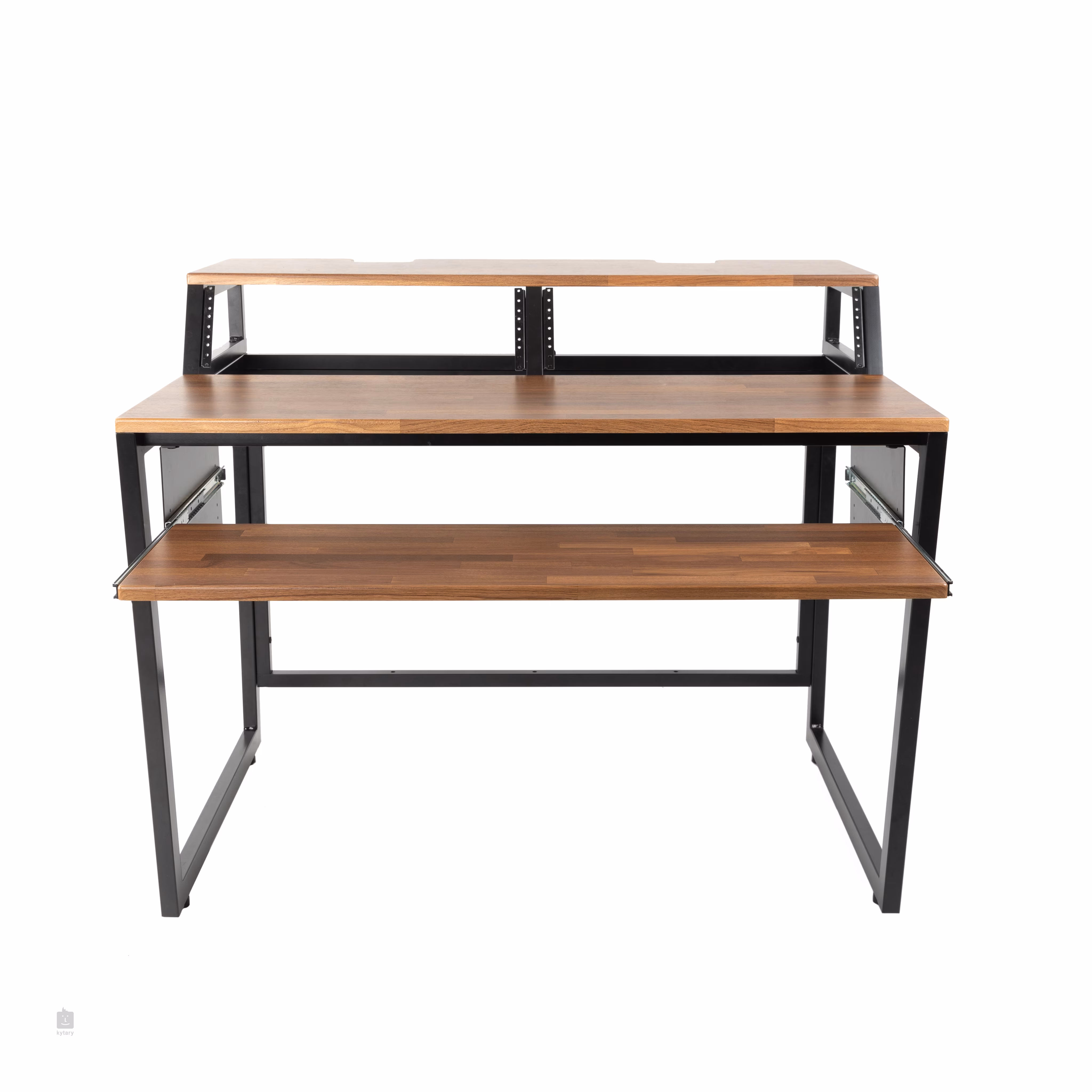 Kromě velké odkládací plochy zde naleznete i speciální výřezy pro kabely a držáky pro rackové nástroje nebo efekty. Výsuvný stoleček pro klávesové nástroje až se 61 klávesami potom můžete nastavit až do pěti výškových pozic a na vyvýšenou poličku umístíte studiové reproduktory a PC monitory. Součástí balení jsou rackové držáky a šroubky pro připevnění vašich zařízení.