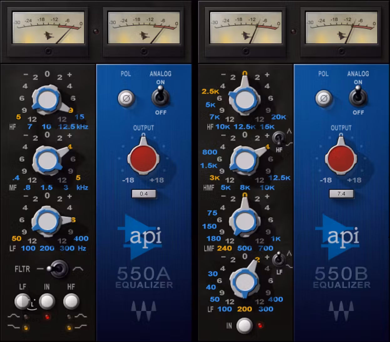 Tvarujte svůj tón pomocí výjimečné EQ křivky Rozhraní API 550 představuje mimořádný EQ, kde se Q hodnota mění v závislosti na hlasitosti, takže zesílení dodává soustředěnější hudební kvalitu - zatímco snížení zesílení poskytuje přirozené, jemné až strmé tvarování tónu. Modely 550A/B, vyvinuté v úzké spolupráci s firmou API, jsou rekonstrukcí těchto legend z konce 60. let. Speciálně vybrané frekvence pozvednou nástroje nahoru nebo je posunou dále dozadu - stejně snadno, jako mohou tvarovat kontury mixu. Pro jednotlivé stopy, sběrnice nebo celé mastery API 550 definuje hudební transparentnost.